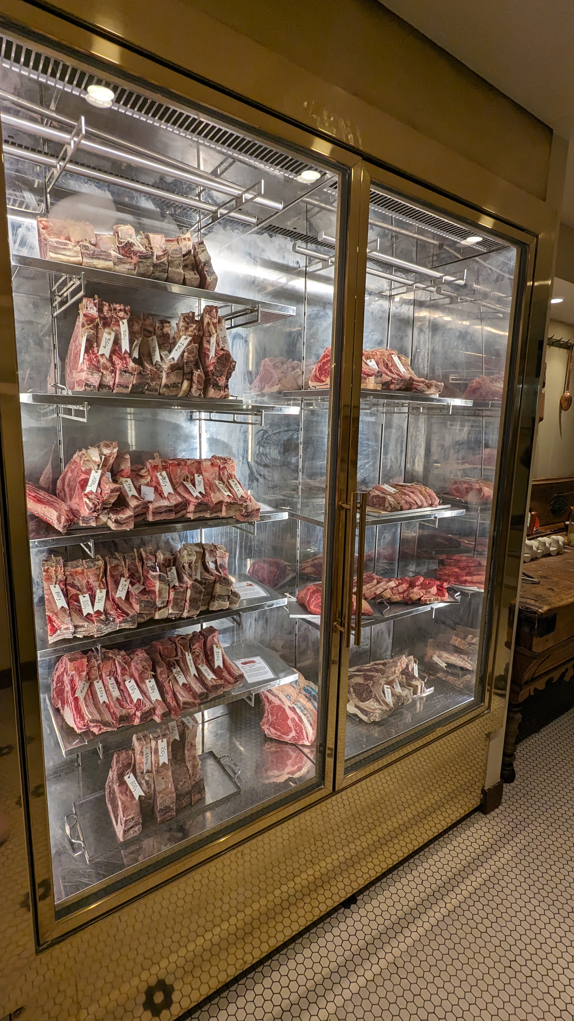 Avis aux amateurs de bonnes viandes. C’est un des bons endroits de la ville. Découvert samedi dernier. Viandes tellement tendre… (une première pour ma part) persillée, pas beaucoup de gras (au choix) vraiment succulent. La carte des vins est vraiment très (trop ?) fournie. Les tarifs sont élevés mais pour ce qui est de la viande, vous pouvez vous en sortir pour un tarif qui vaut le coup. Pour information, le tarif est au poids et diffère bien sûr, en fonction du type de viande choisi. Côté service, le personnel est professionnel RAS. Invite cependant beaucoup trop facilement à mon goût, vers les tarifs élevés. Je recommande ce restaurant à toute personne désirant découvrir le niveau supérieur des bonnes viandes.