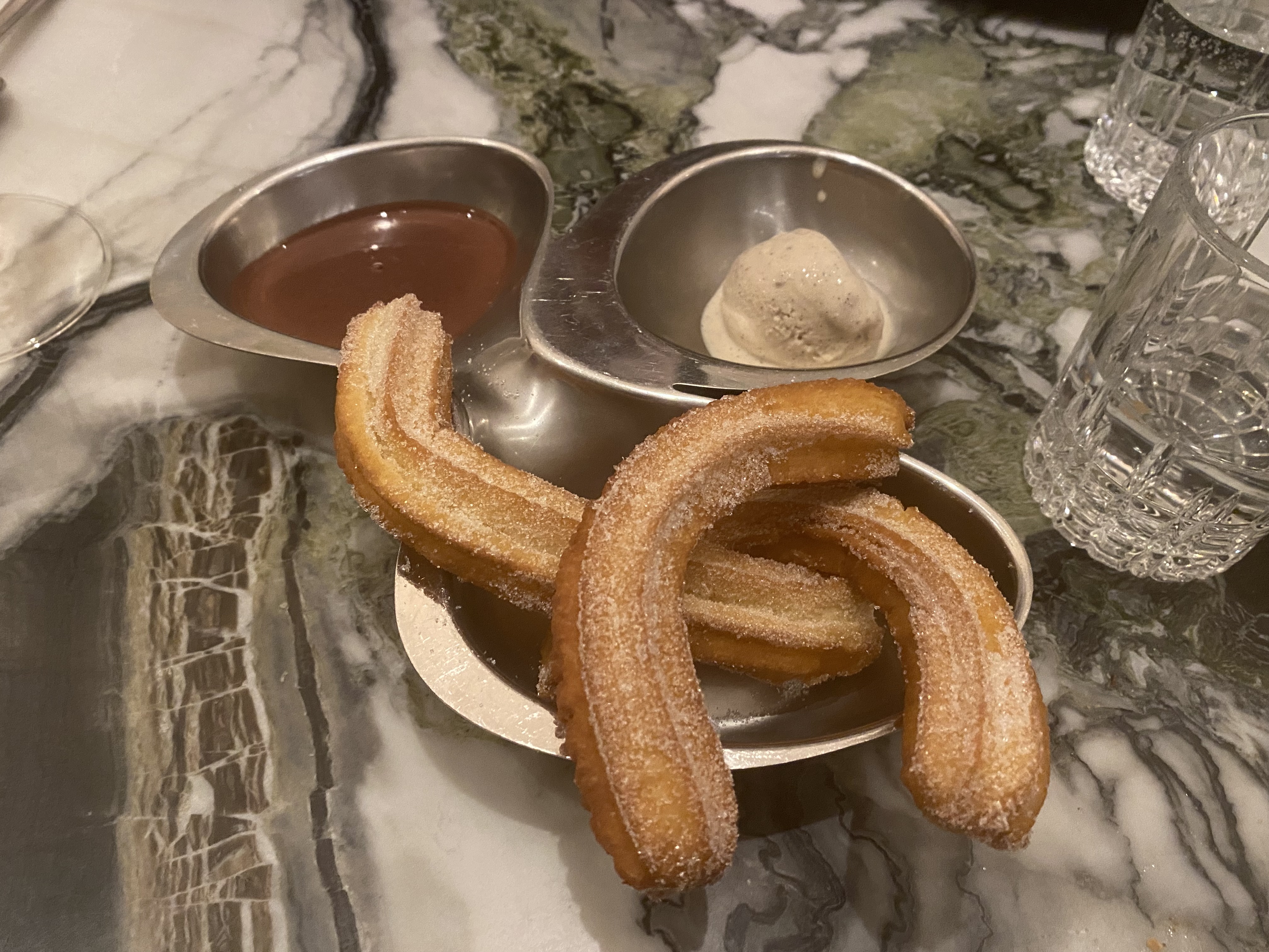Nous avons passé une excellente soirée cependant grosse déception par rapport à nos attentes. La viande était excellente mais à peine chaude et en trop faible quantité, les churros pâteux et décevant….en résumé sous couvert d’un grand nom un rapport qualité prix très discutable.