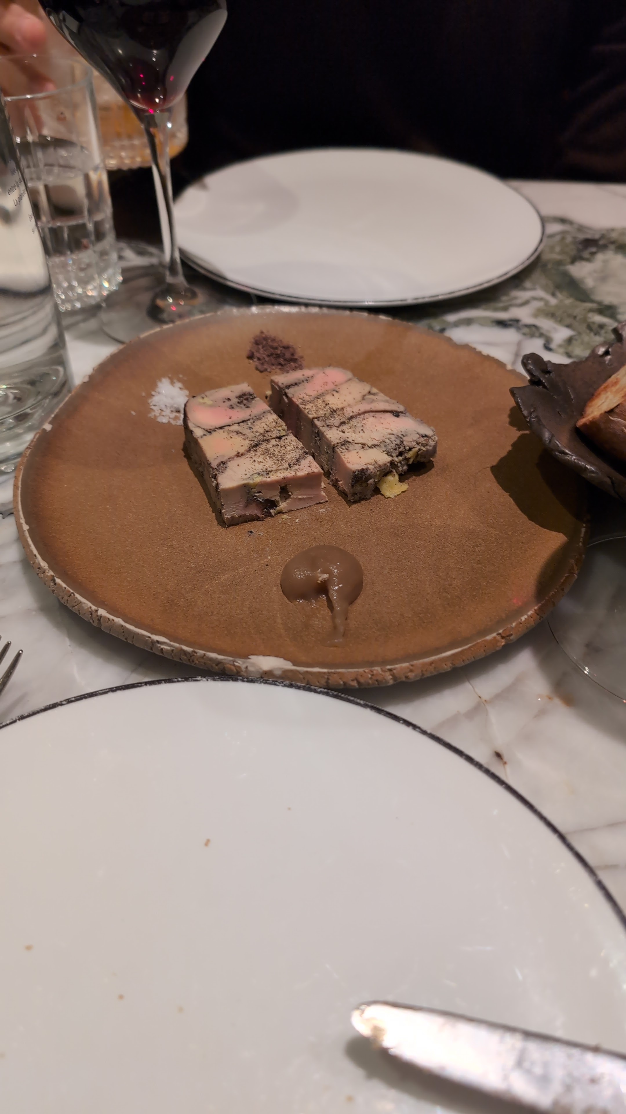 Très decevant… Le serveur parle beaucoup trop et a été genant meme mais peut être n’avons nous pas les codes… il a renversé une goutte d’eau sur la table et a essuyé avec un mouchoir en tissu taché de vin, nettoyage de la table apres le plat directement apres avoir debarassé poussant tout pour passer son mouchoir. Terrine de Foie gras à partager et qui se trouve être juste une tranche… et le reste, rien d’exceptionnel, rien de ouf, rien qui justifie le prix à mon sens ! Meme les frites ne sont pas ce que l’on attend d’une frite… nous serions allés au Buffalo Grill que ça n’aurait rien changé Et l’eau plate en bouteille sans spécification n’est pas comprise dans le service. Pompom, le decor, en inadequation avec le menu.. du marbre, des dorures et des moucherons accrochés dans la tapisserie… Bref, pas un bon ni un mauvais moment mais pas à renouveller