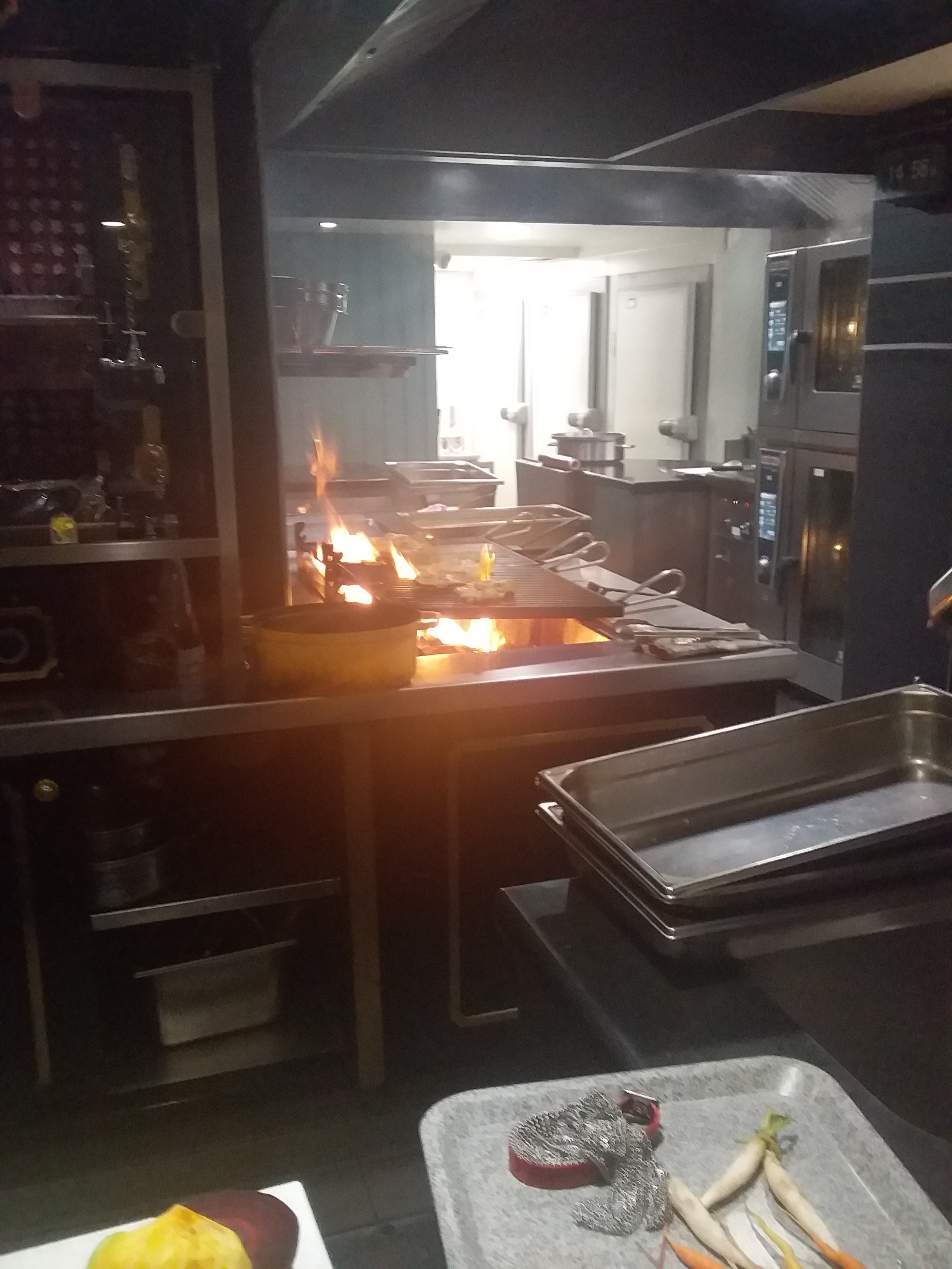 Un superbe moment. Je vous recommande les calmars sauvages à la carbonara en entrée. Un véritable trompe l’œil succulent. J’ai partagé une Côte de Bœuf Angus qui était sublime, tout comme les accompagnements et les sauces (coup de cœur pour la sauce Bercy). J’ai pris les churros en dessert. Même en fin de repas ça passe tout seul. Léger et gourmand à la fois. L’addition dépendra de vos envies. Ça peut monter haut si vous prenez tout à la carte mais sachez qu’il y a un menu ou des plats tout à fait abordables. Pour la part, je reviendrai ! PS : pour ceux qui aiment savoir ce qu’ils mangent, les cuisines sont ouvertes.