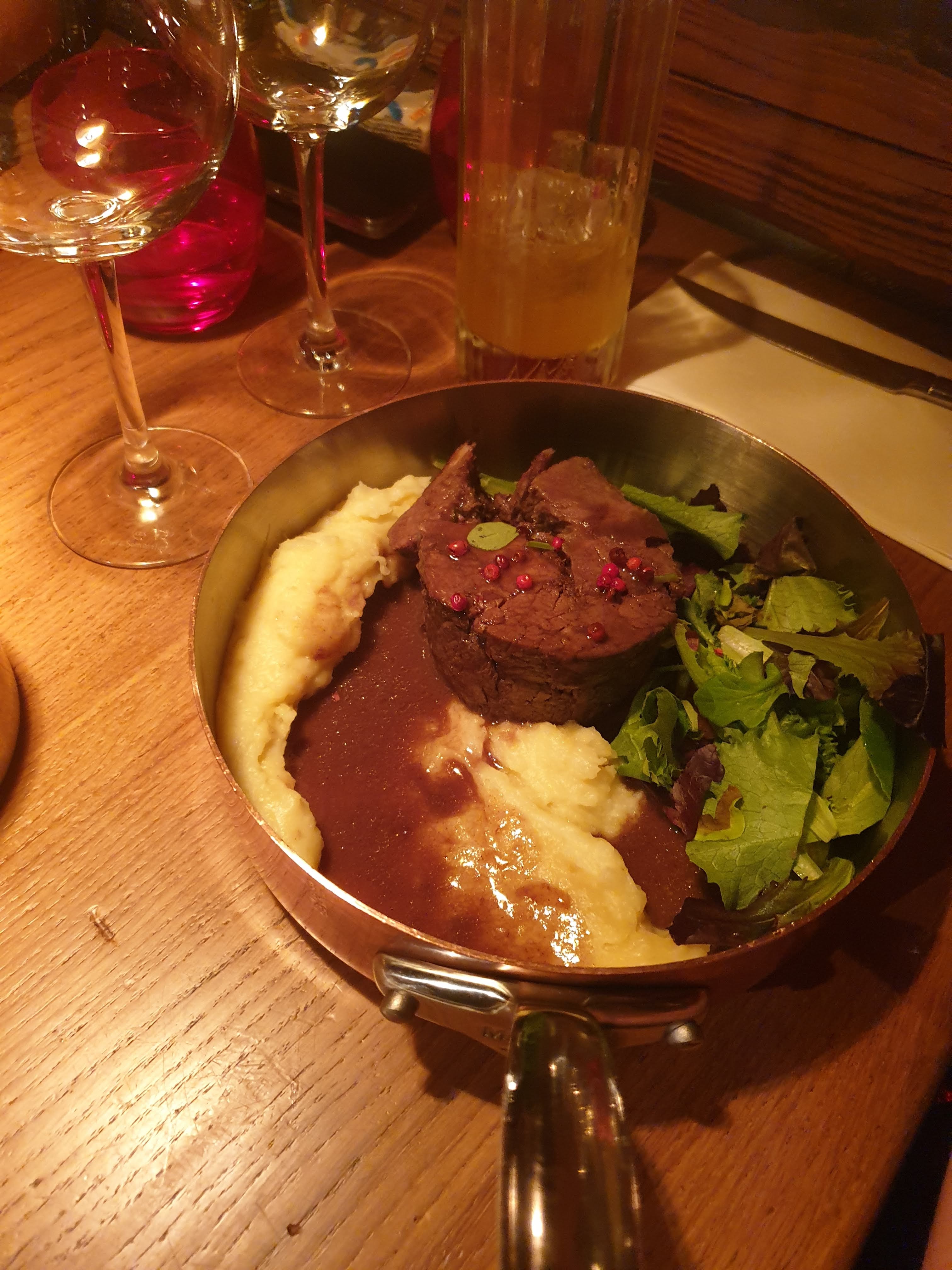 La Côte de Bœuf façon Rossini pour 2 personnes était délicieuse ! Pour terminer cet excellent repas nous avons dégusté une fine mousse au chocolat.