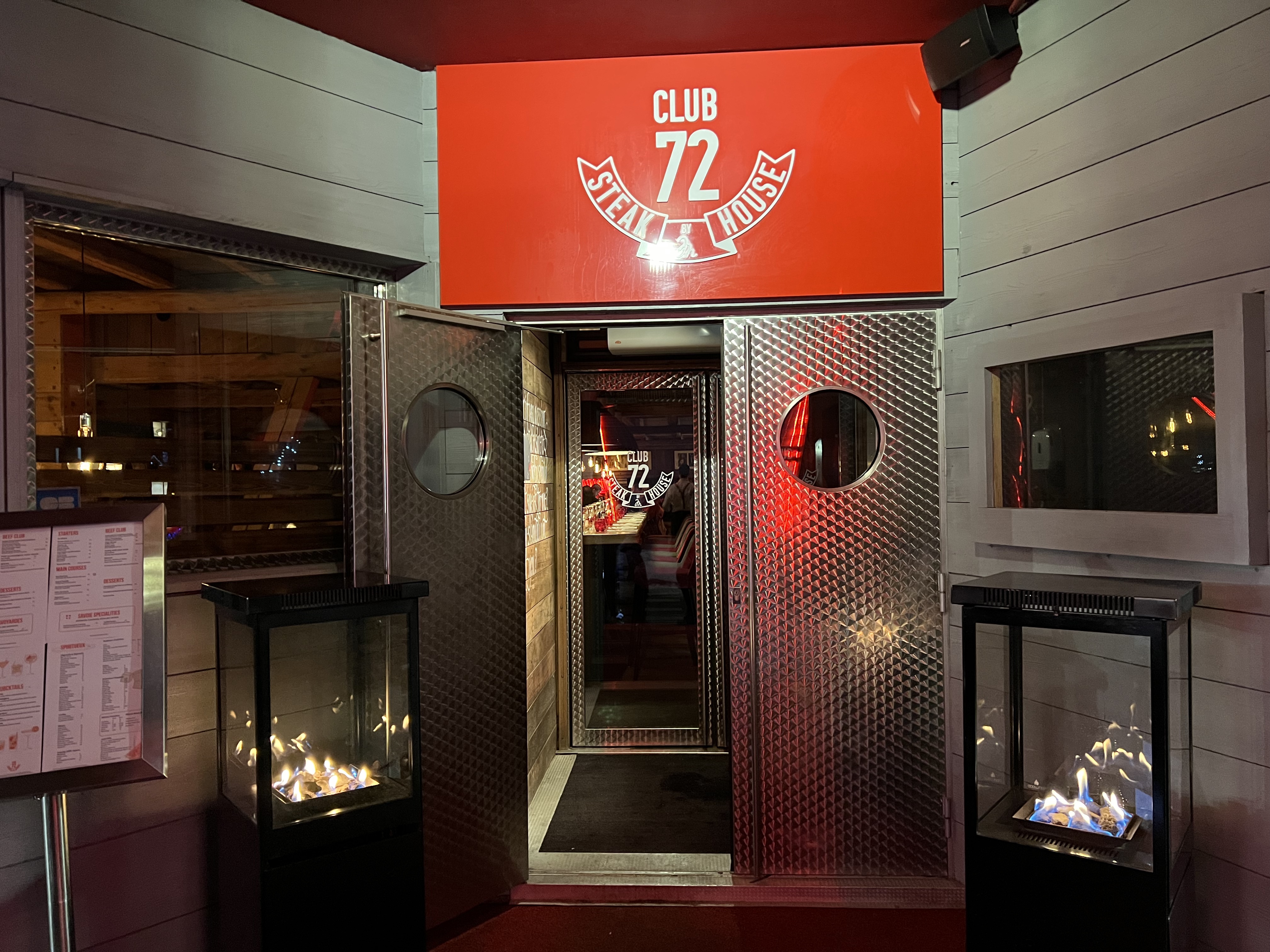 Excellents restaurant de Viandes ! Habitués de la station, la dégustation d'une bonne viande (surtout Rouge) est toujours un plaisir (et un régal) au Club 72. Tarifs un peu plus élevés que la moyenne mais Qualité de la viande et du Service largement au-dessus, vous ne serez pas déçu. Les viandes et les desserts sont présentés sur plateaux lors de la commande, alors comment ne pas craquer face à de si beaux produits. Seul bémol, le tarif des desserts un peu élevé et la facturation de la sauce mayonnaise surprenante. Encore merci à toute l'équipe : serveurs, chef de salle et cuisiniers...pour ces très bons moments !