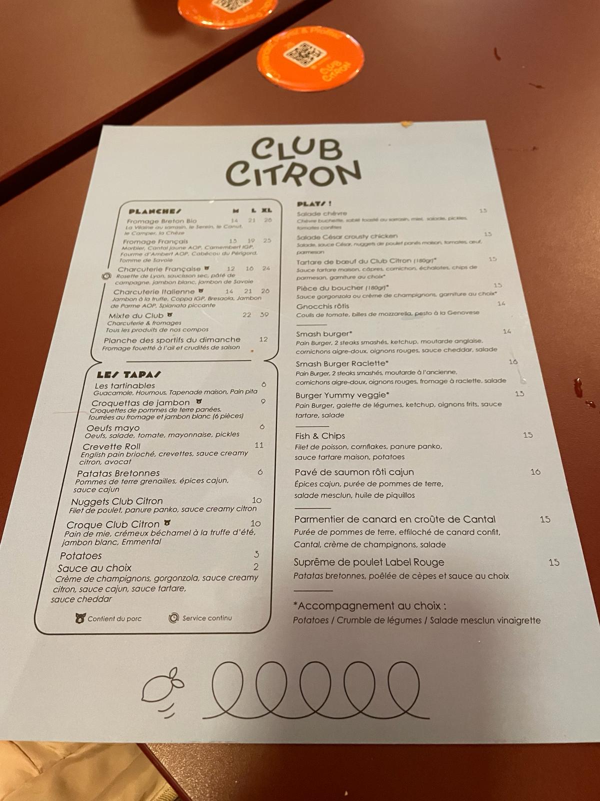 Nous avons découvert club citron pour une soirée de service . Nous étions une trentaine et nous avons passé une excellente soirée. Le personnel est vraiment accueillant et a l'écoute, l'ambiance est super et les planches très bien. Lieu à découvrir.