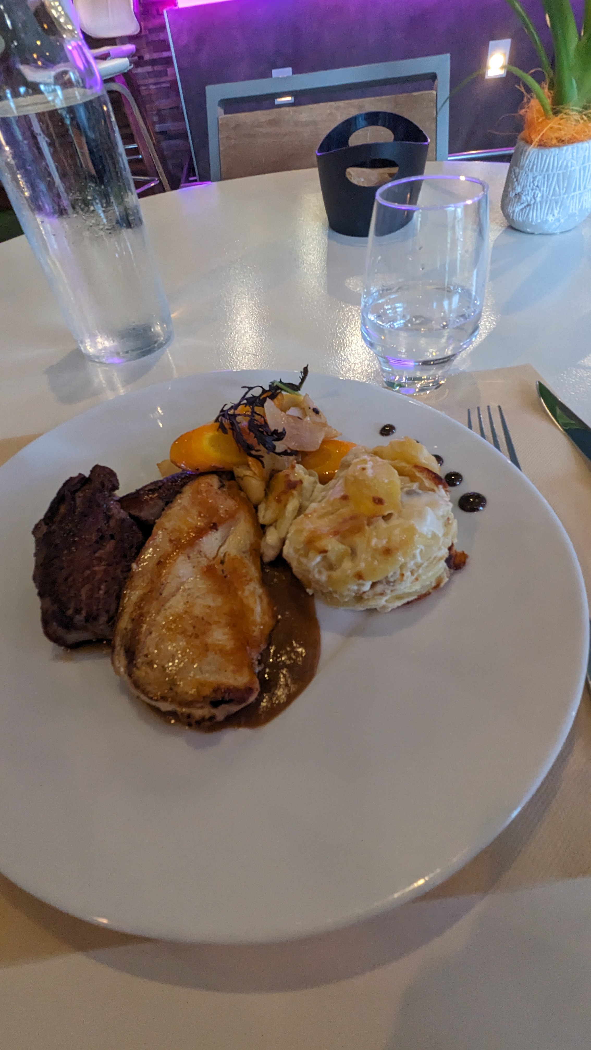 Superbe cadre cuisine raffinée Et un service au top avec le sourire voir plus . De plus un tarif raisonnable