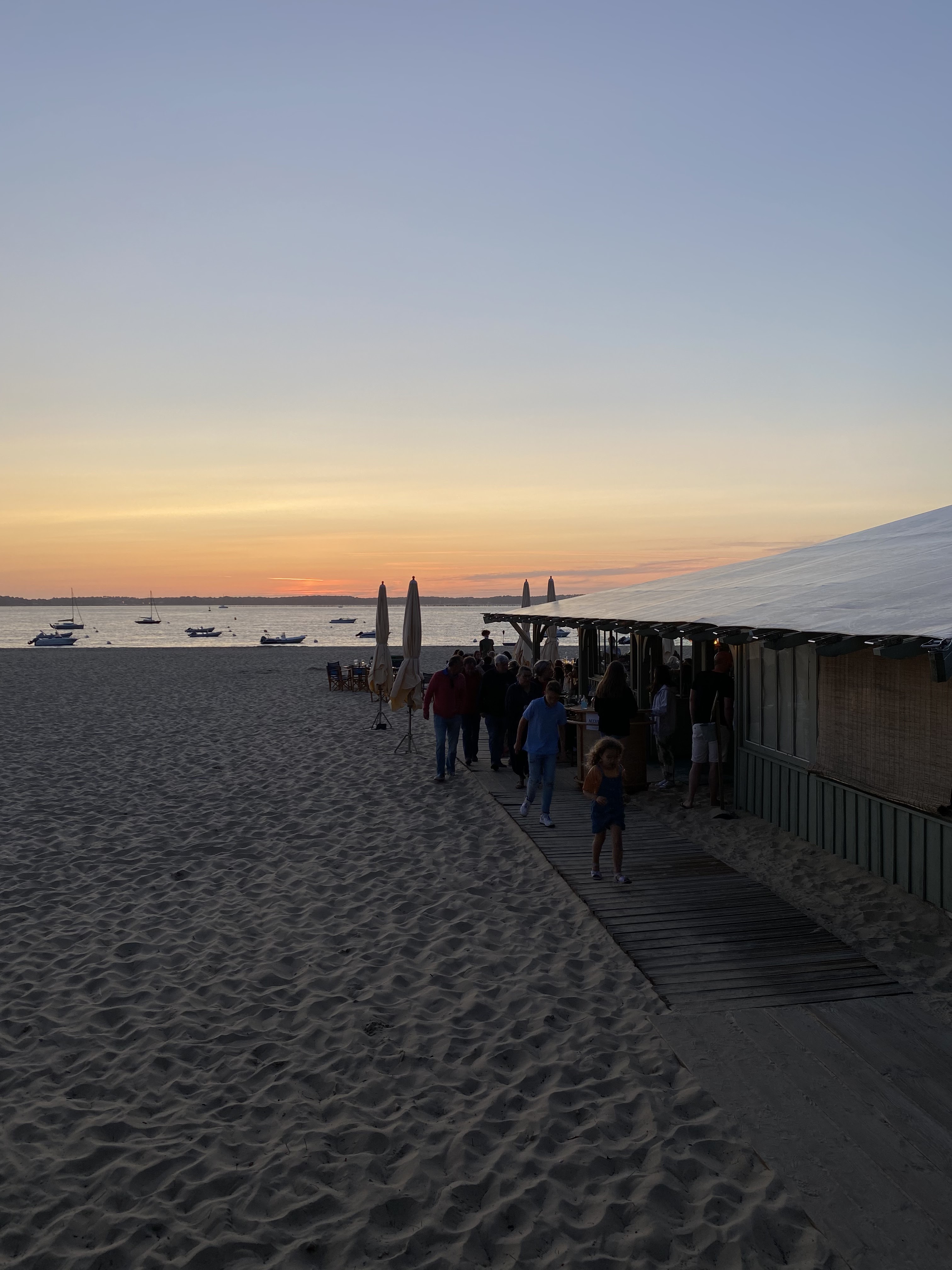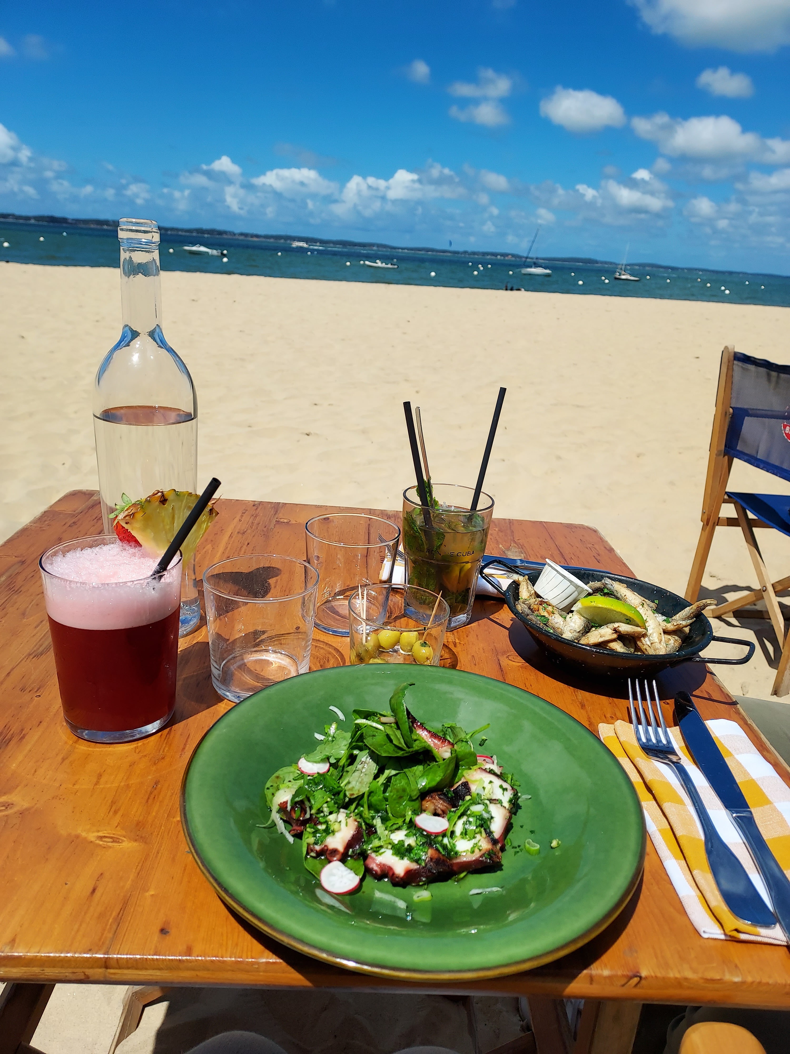 Si vous êtes en vacances à Arcachon, y a pas à dire, c’est LE spot où passer une magnifique soirée. La carte propose des plats frais, avec des huîtres, chipirons ou anchois frits en entrée (entre autre) et en plat poisson ou viande, au choix. Le cadre est juste fou, on y mange les pieds dans le sable, en observant le coucher de soleil et le service est des plus agréables. Pour résumé, un très bel endroit pour bien manger et passer une superbe soirée, si le temps le permet ;)