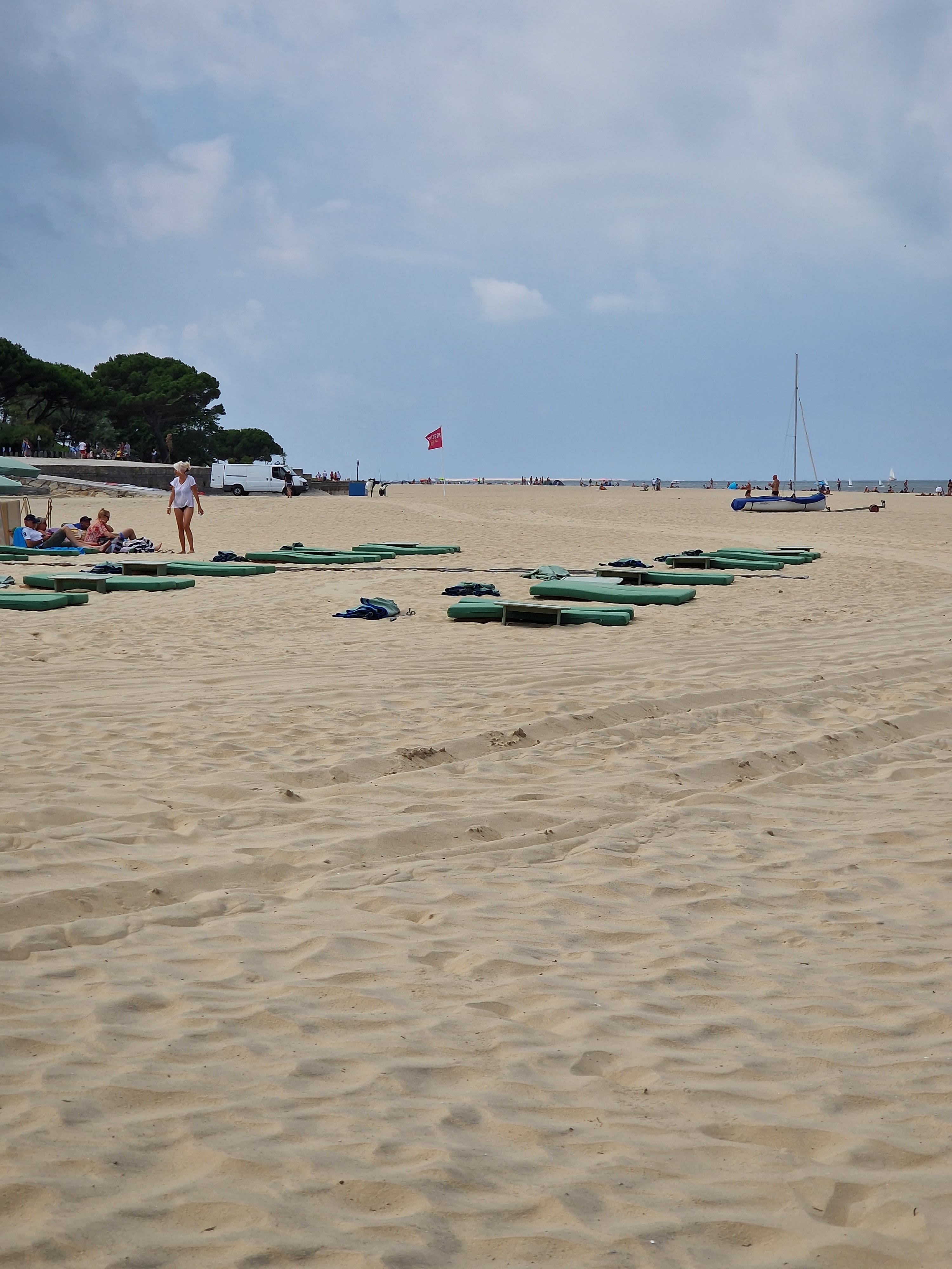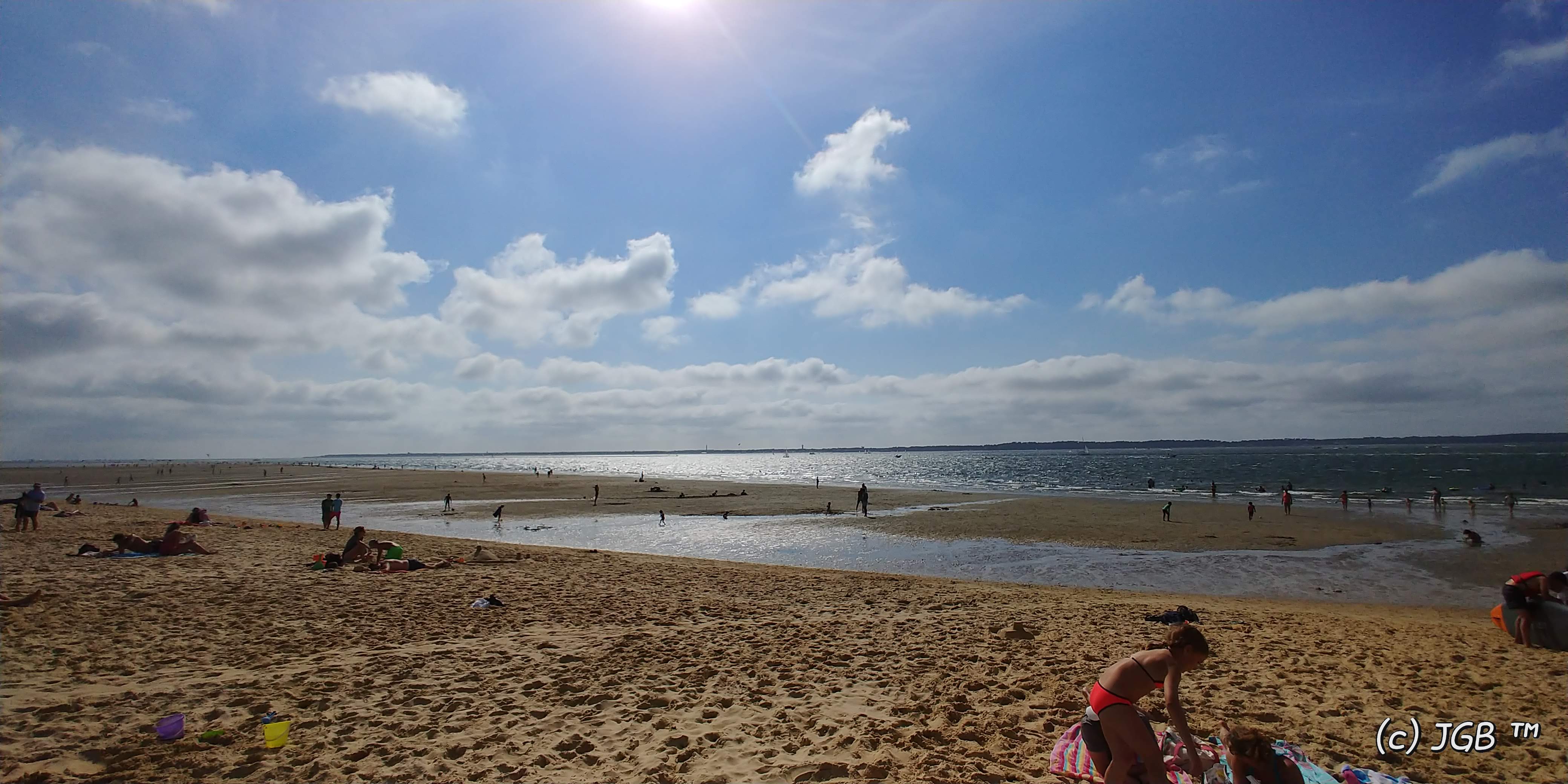 Une superbe plage familiale, possibilité de se garer gratuitement aux abords, j'imagine qu'en pleine saison les places doivent être rares mais pratiques car juste en bord de plage. La plage est en face du Cap Ferret.