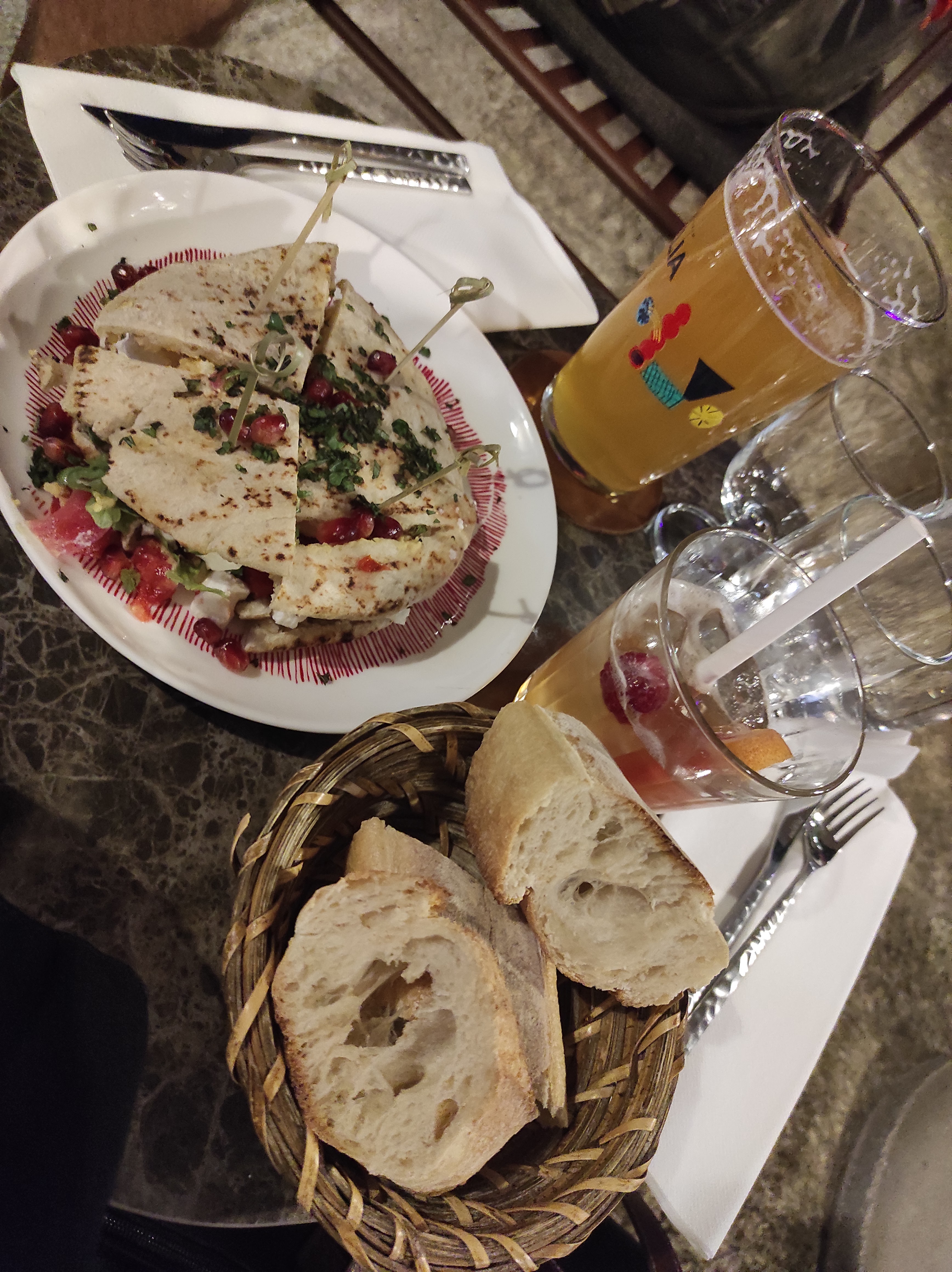 Lieu très agréable et sympa. Apéritifs servis en même que les plats qui étaient froids. Pas d'eau, pas de pain, pas de sel. On a senti que la serveuse était oppressée d'où un service laissant à désirer