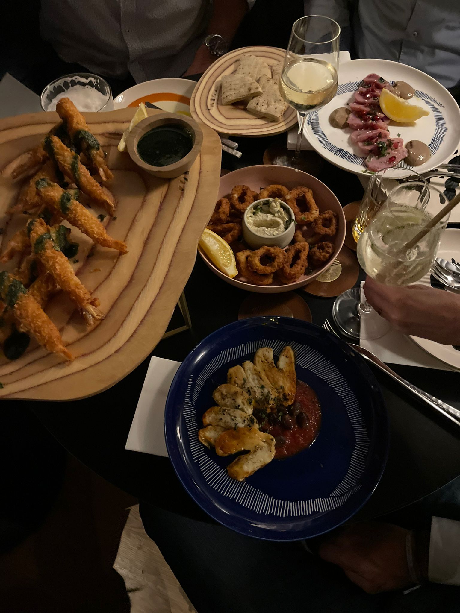 Le service était excellent et l'endroit plutôt agréable. Et le vin était délicieux. La nourriture était cependant tellement mauvaise. Le labneh n'avait pas la bonne consistance (et beaucoup trop d'olives), le risotto avait trop de sauce au fromage (il maîtrisait tout et donnait une sensation assez maladive), le tatare de saumon était insipide (pas assez mariné ou pas assez de jus de citron vert ou de citron ? ), le tartare de bœuf était le pire que j'ai jamais mangé (pas de câpres, pire consistance JAMAIS) et le menu enfant... qui met des olives dans la viande dans une croquette pour enfants ?!?! Sérieusement... Quoi qu'il en soit, nous n'avons peut-être pas eu de chance, mais c'était baaaad...
