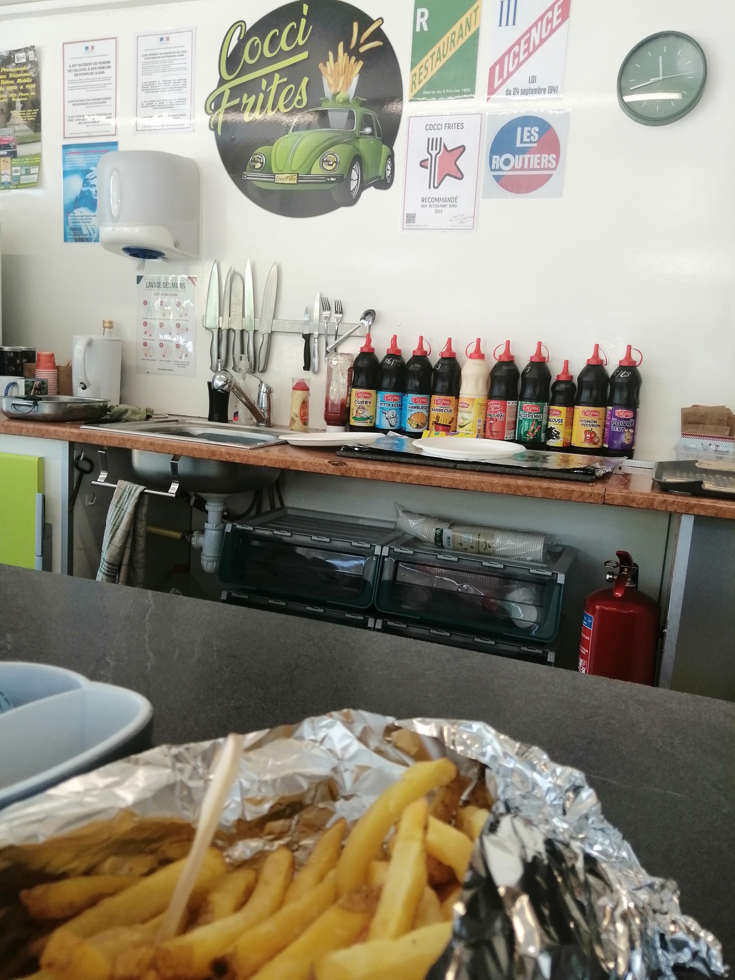 Frites et merguez excellentes, simpa, propre, que demander de plus... Arrêtez vous et faites le travailler...