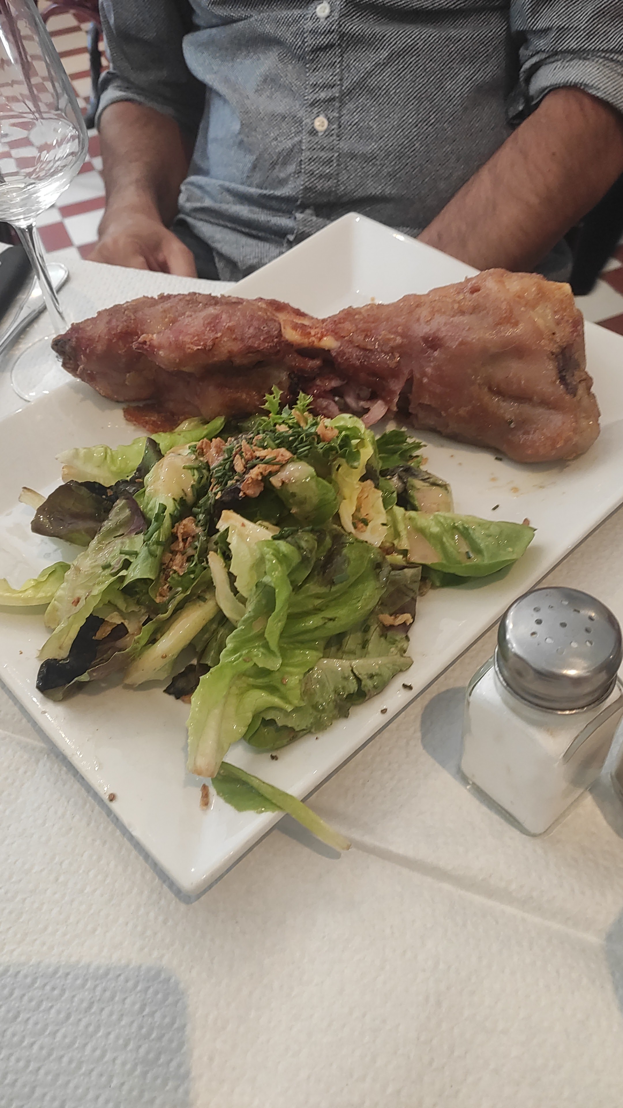 Resto atypique dans un style ancienne boucherie, nous étions deux, deux plats différents, une andouillette frites énorme et très bonne, en ce qui me concerne des riz de veau beaucoup trop cuit et farineux qui baignaient dans une sauce, bof bof bof...