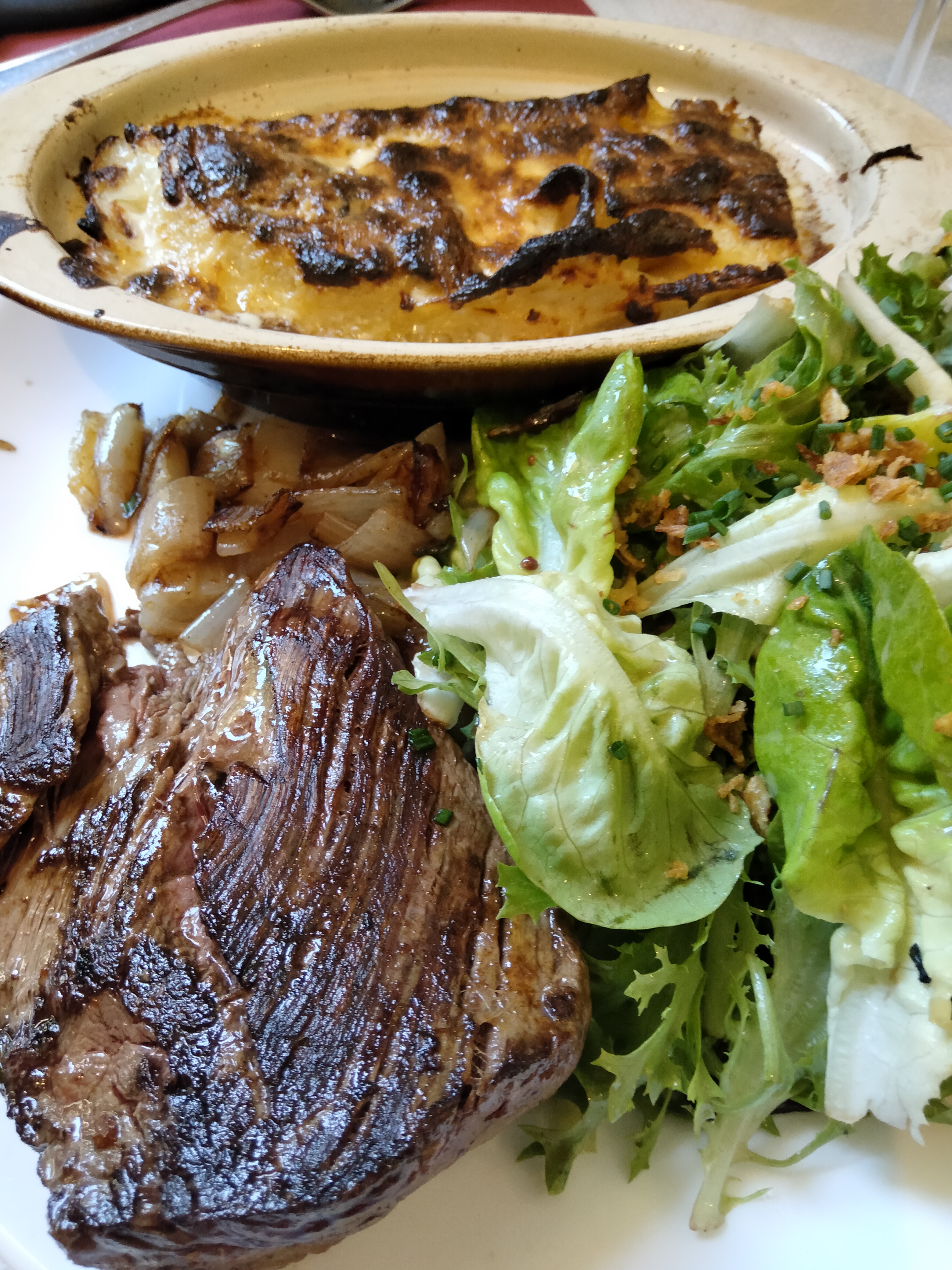 Un gratin dauphinois à lecher le plat. Des ris de veaux excellents. Service un peu long,mais on oublie tout tellement la cuisine est excellente