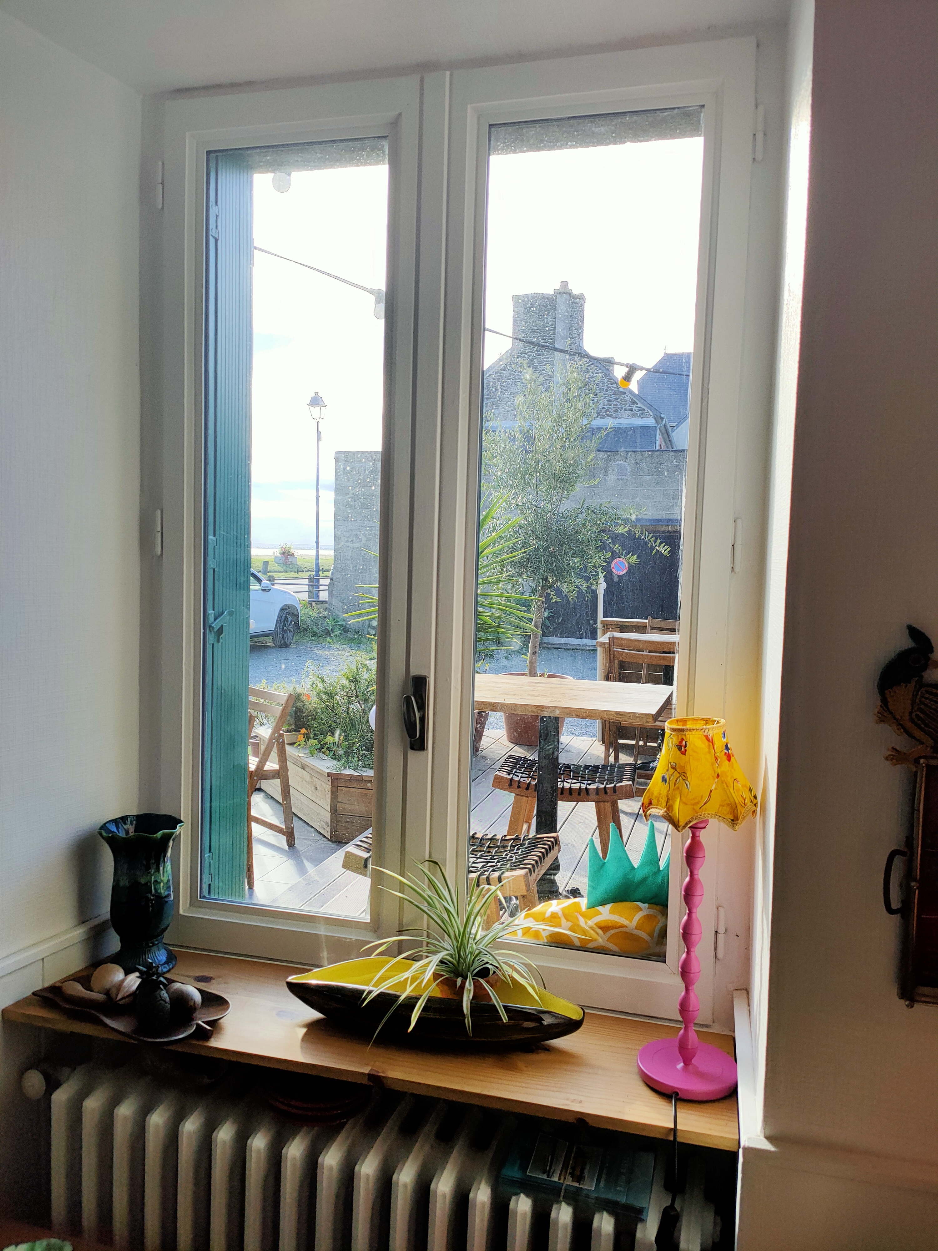 Lieu atypique, à la fois chambre d'hôtes, café, restaurant, boutique. L'endroit est chaleureux, à l'image des propriétaires. La déco est colorée. Notre chambre était très propre et donnait sur la mer. Tout un pan de mur était peint d'une fresque de paysages exotiques. Au premier étage, une cuisine avec frigo, thé, café est mise à disposition de tous les locataires. On peut y préparer son petit-déjeuner ou choisir comme nous celui de la maison. Là vous goûterez à de la bonne baguette fraîche, un croissant, un jus d'oranges pressées et si vous choisissez le thé une vraie théière, pas juste une petite tasse ridicule. Le tout face à la mer. Elle n'est pas belle la vie? D'ailleurs, il y a de part et d'autres de Coco bay des chemins piétonniers qui longent la baie. A noter qu'il n'y a pas de parking, nous étions hors saison et avons trouvé à stationner aisément, nous ne savons pas si c'est toujours le cas. Bien que notre chambre ait été située au-dessus du restaurant, nous n'entendions pas le bruit des conversations, seulement un peu celui des voitures dans la rue. Coco bay est un endroit où on a envie de rester et de prendre le temps de vivre.