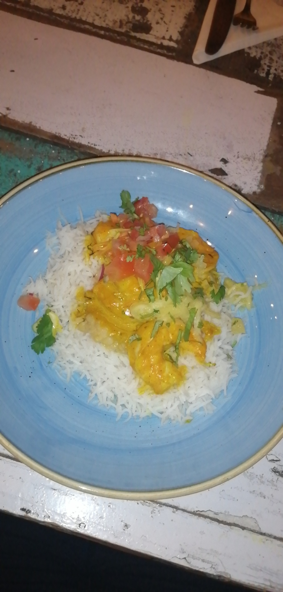 Cadre insolite les pieds dans le sable, repas très bon style Seychelles et pas cher. (Sur les photos : entrée salade de crevettes, plat poulet coco, dessert : je vous recommande le gâteau coco. Mon amie a pris la mousse à la mangue mais a préféré mon gâteau.) Très bon rapport qualité/prix. Big up au chef : Bonne nuit ! Et à la prochaine