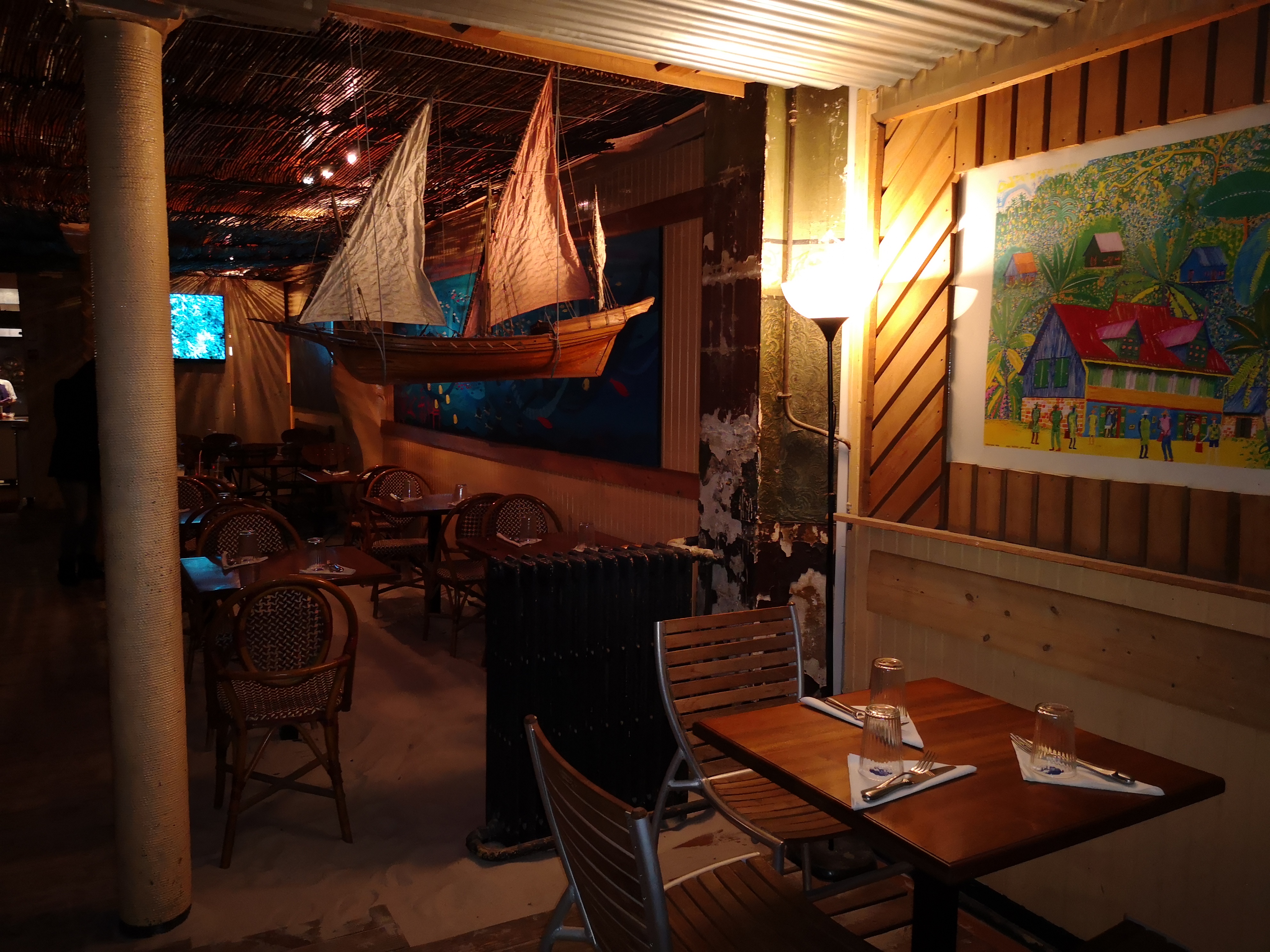 Salle à l'ambiance plage (les tables sont sur du vrai sable blanc). Cuisine excellente mais les desserts sont un peu en dessous. Les coktails à base de rhum antillais 59 degrés tapent fort donc une bonne adresse pour passer une bonne soirée entre amis ou groupes.