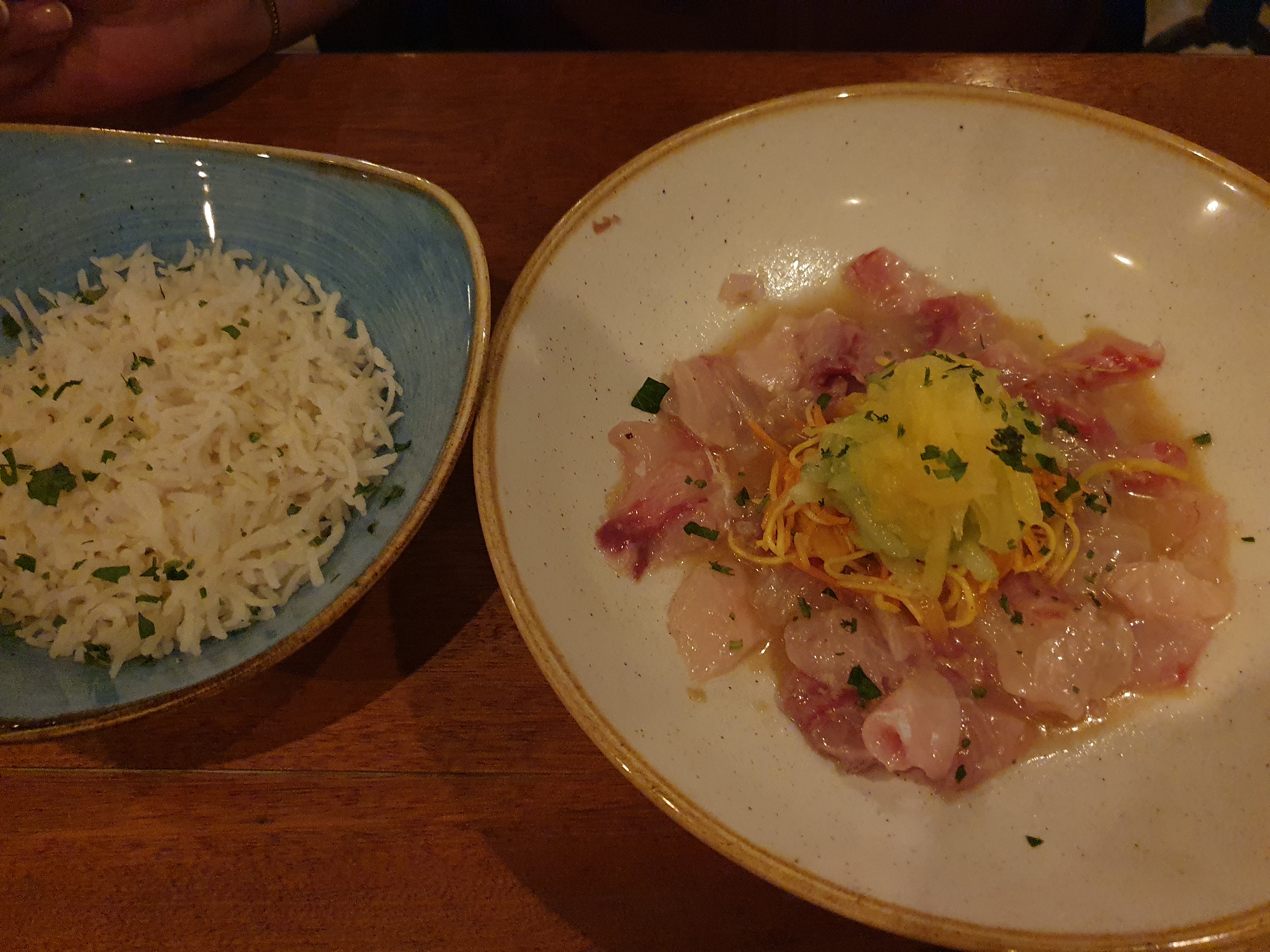 Ceviche de daurade excellent, un peu déçuepar le tutti fruiti écœurant