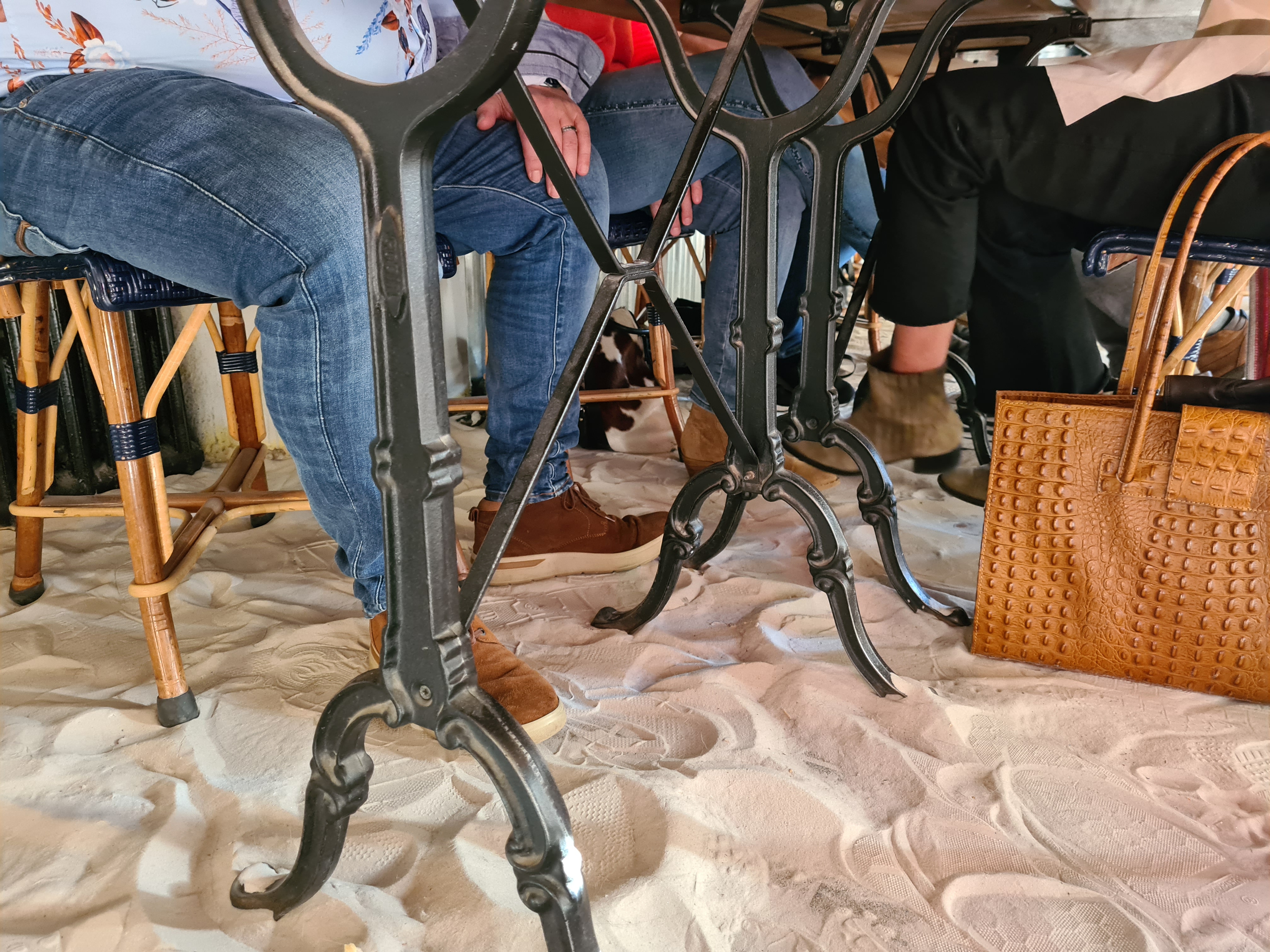Bon accueil, repas les pieds dans le sable au cœur de Paris. Endroit calme et agréable. 5 personnes à table, tous ont aimé