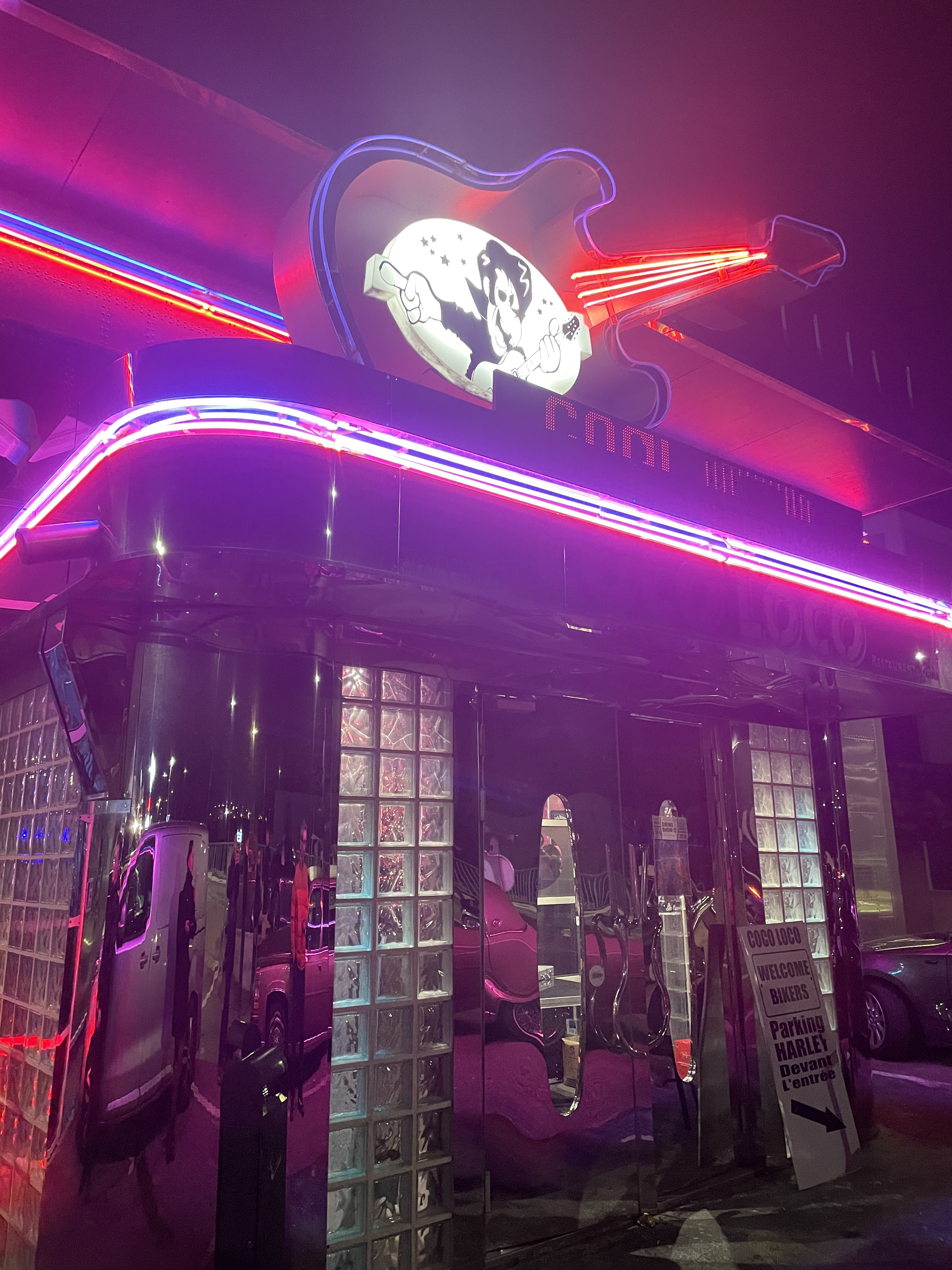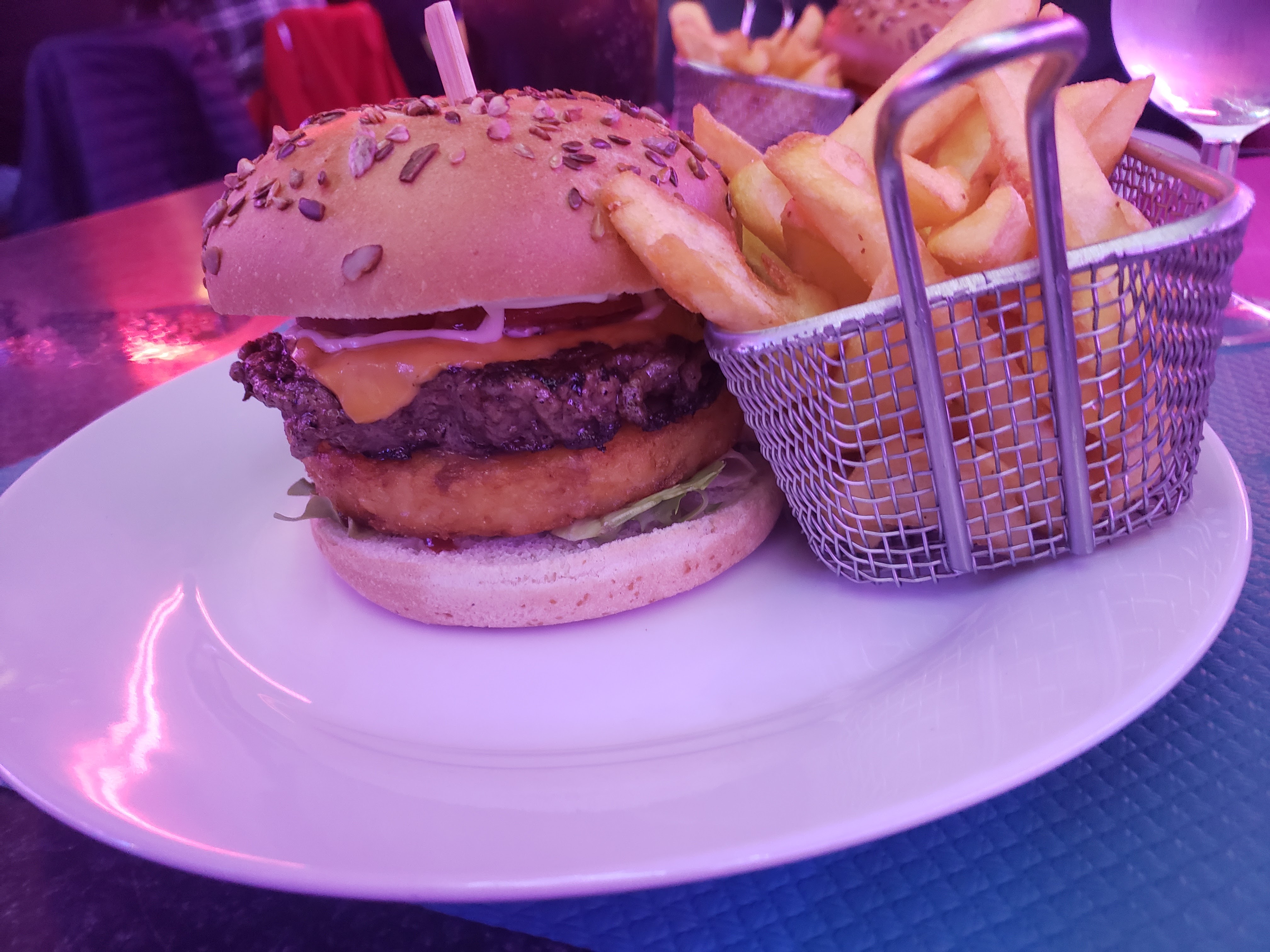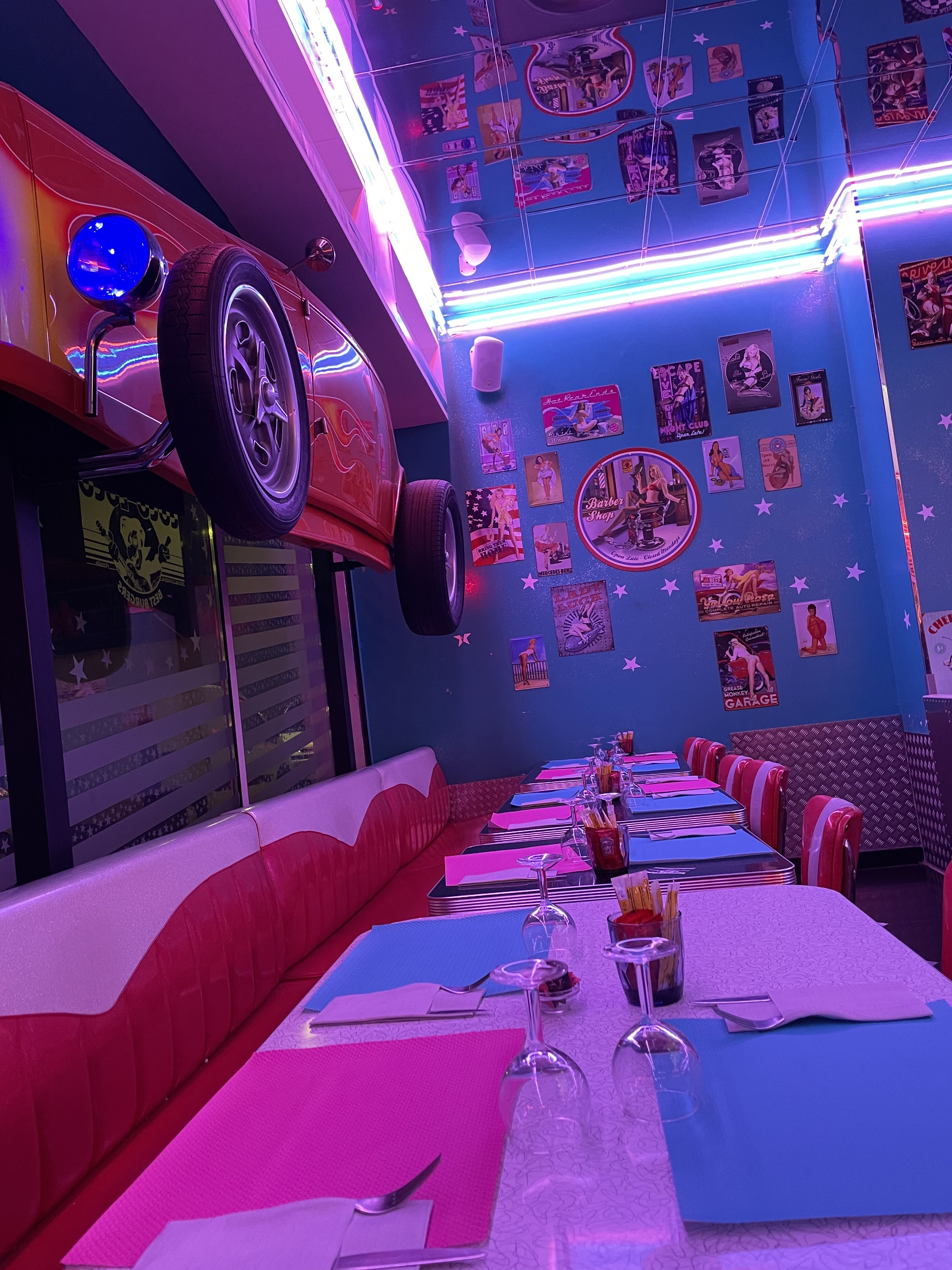 Restaurant à l’ambiance rock, avec ses néons, ses sièges en vinyle et ses pin-up. Musique très forte rendant presque impossible les discussions sans parler fort. Énorme brouhaha dans la salle donc. Carte humoristique, mais service très lent (nous avons attendus 1h pour recevoir nos plats). Certes nous étions un samedi soir, mais le restaurant n’était pas complet. Prix corrects. Viande et bacon des Burger très bon, pain léger, mais fromage à l’apparence industriel. Un peu gras. Proclame le fait-maison, nous avons quelques doutes (notamment les frites…). Bon mais sans surprise en somme. Aucune vérification du pass sanitaire, le personnel ne porte pas de masque. A tester.