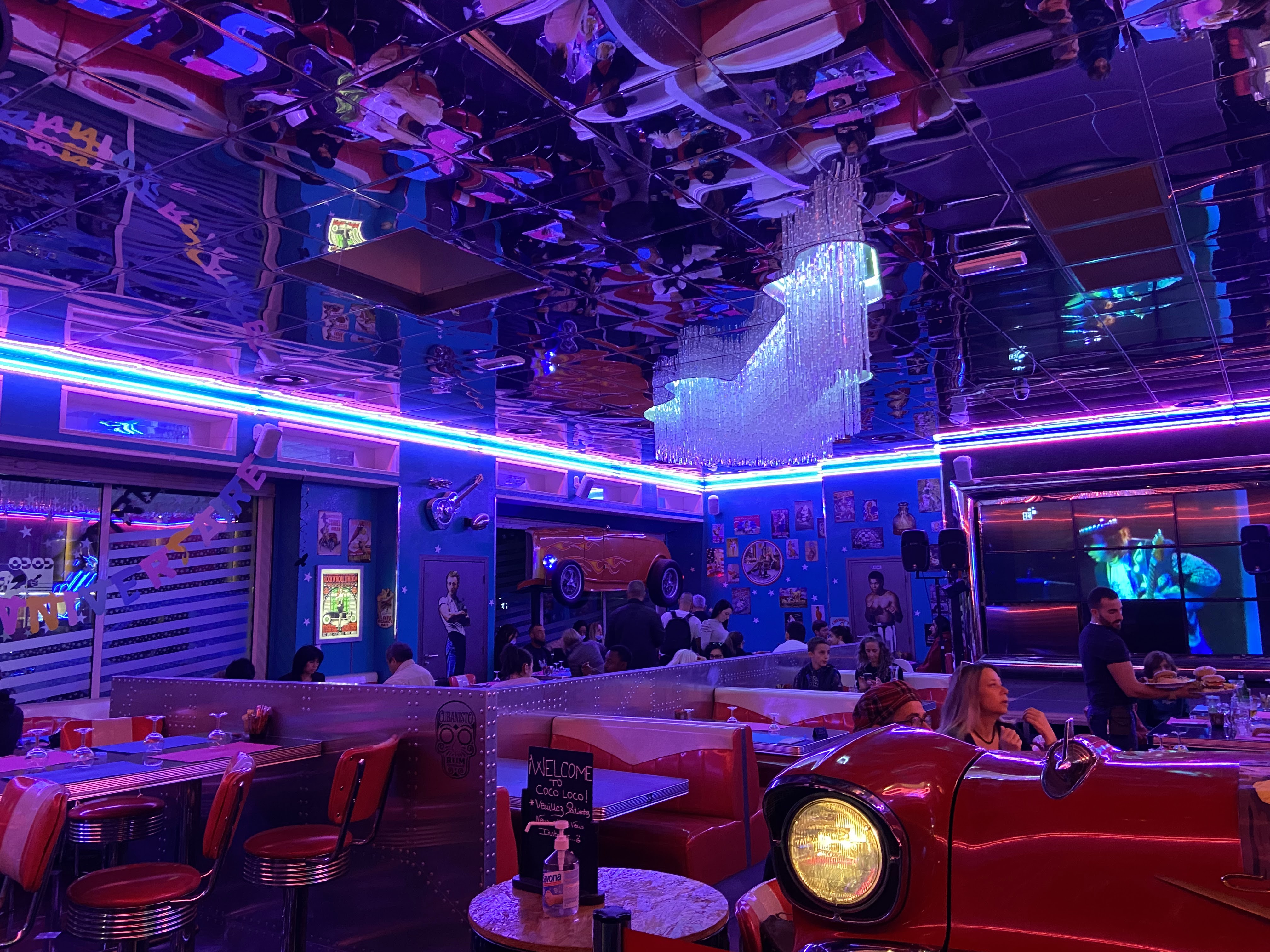 Super! Ambiance top aux couleurs des Diners U.S, musique et décos parfaitement dans le thème. La carte est très alléchante et pleine de ptits mots sympas qui donnent l'eau à la bouche tout en sachant sur quoi on va tomber. Accueil chaleureuse, gérant sympa, serveurs sympas, franchement on y est bien. Les burgers sont fouuuuuus! Un régal, pour les petits et grands, et les petits, c'est franchement génial de leur servir un plat directement sur la route de la table en cadillac, trop délire. On y est bien et on y retournera, les prix sont classiques, et surtout on peut personnaliser son burger en allant jusqu'à un nombre de steaks impensable...les frites et le chili en accompagnement, ça le fait, et les desserts sont divins. Un super moment! A recommander pour manger de l'hamburger ! P.s: pour vous garer, en face du resto, de l'autre côté de la rue il y a un parking énorme, avec des escaliers débouchant juste devant le Coco loco.
