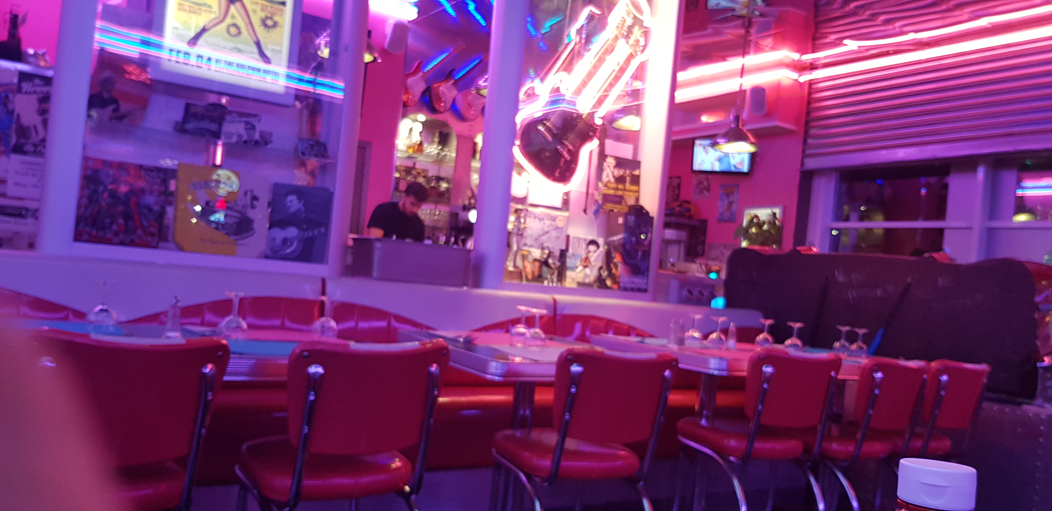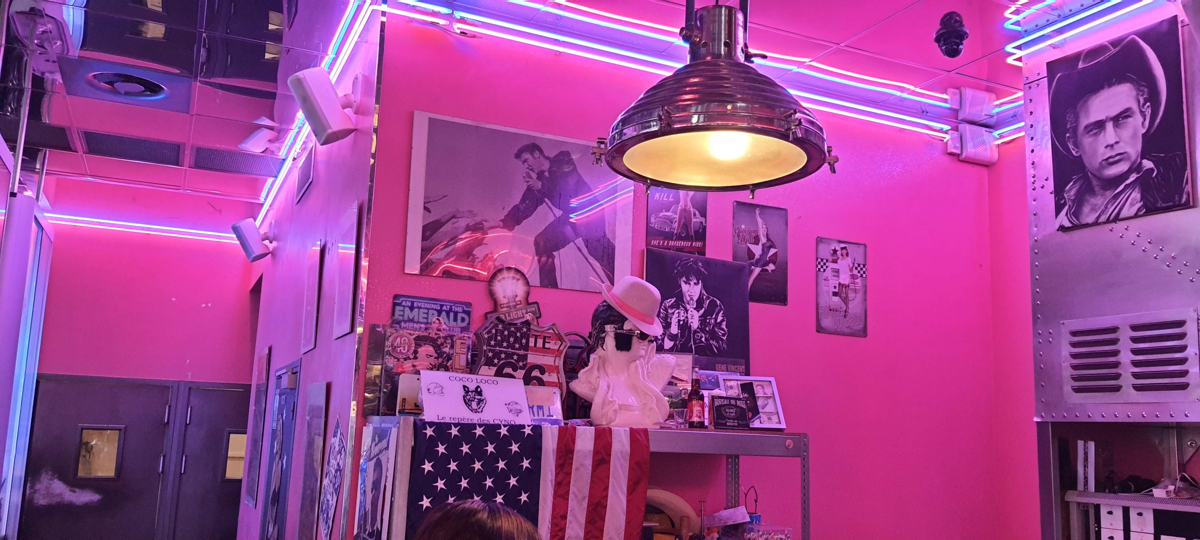 Bonne ambiance, des concerts, cadre fifties où l'on écoute du Rock'n'roll, patron très sympathique, bonne bouffe. Cool quoi 😎