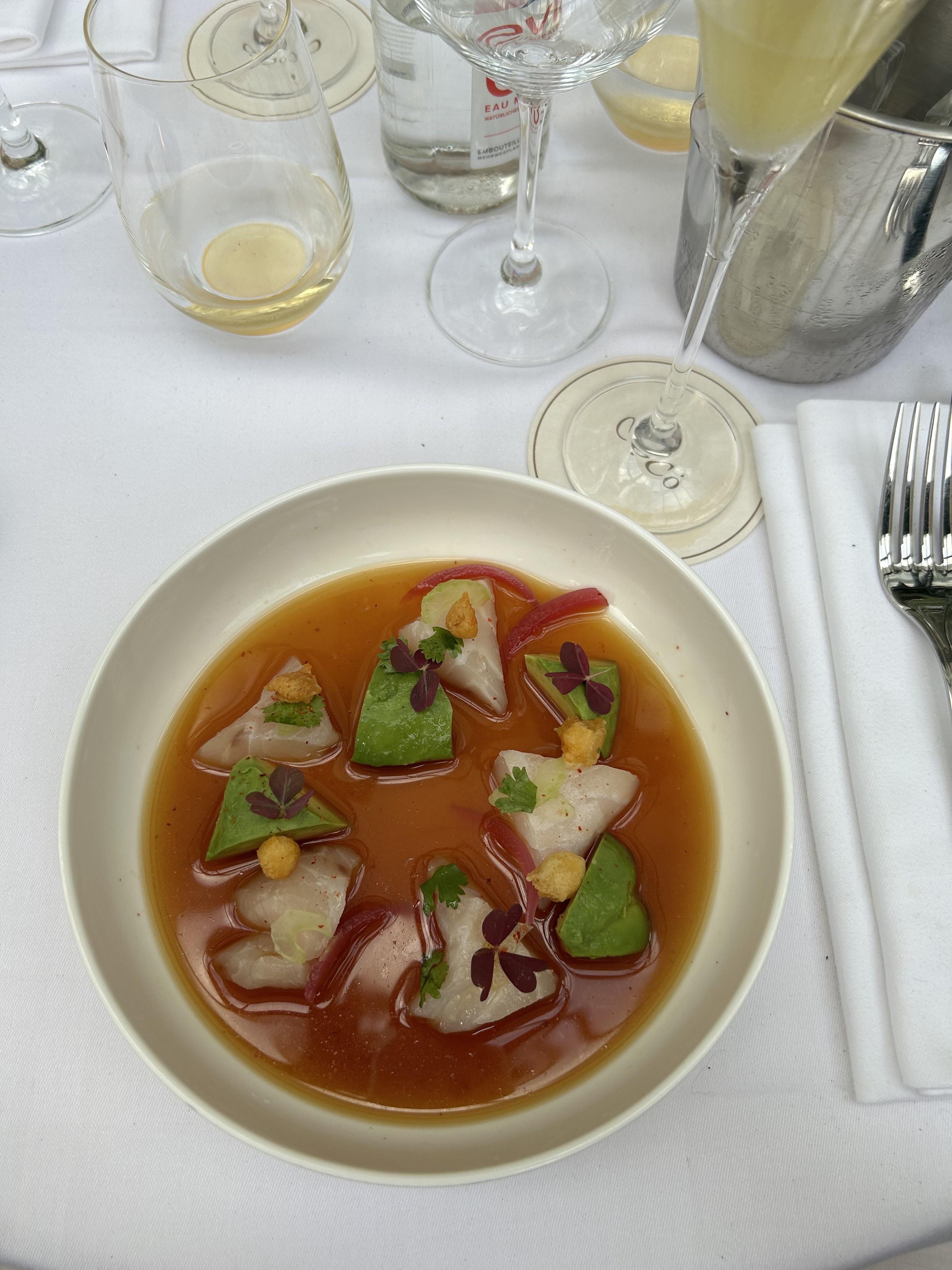 Je suis restaurateur depuis 8 ans, chef d’un bar à cocktail à Genève mais avec un parcours hôtelier en Suisse aussi et j’ai été émerveillé par chaque détail de mon expérience là bas. À partir du moment où l’on a été accueilli par les hôtesses, on entre dans un monde hors du temps, où les cocktails sont réalisé avec finesse, les plats raffinés et élégants, et un personnel professionnel , chaleureux et attentionné. Nous avons eu la chance d’avoir un guitariste acoustic qui a sublimé l’ambiance tamisée, chic et douce pour notre soirée en amoureux. C’est l’une de mes meilleures expériences dans un restaurant depuis très longtemps Merci à tous et toutes pour votre service, bravo. À bientôt