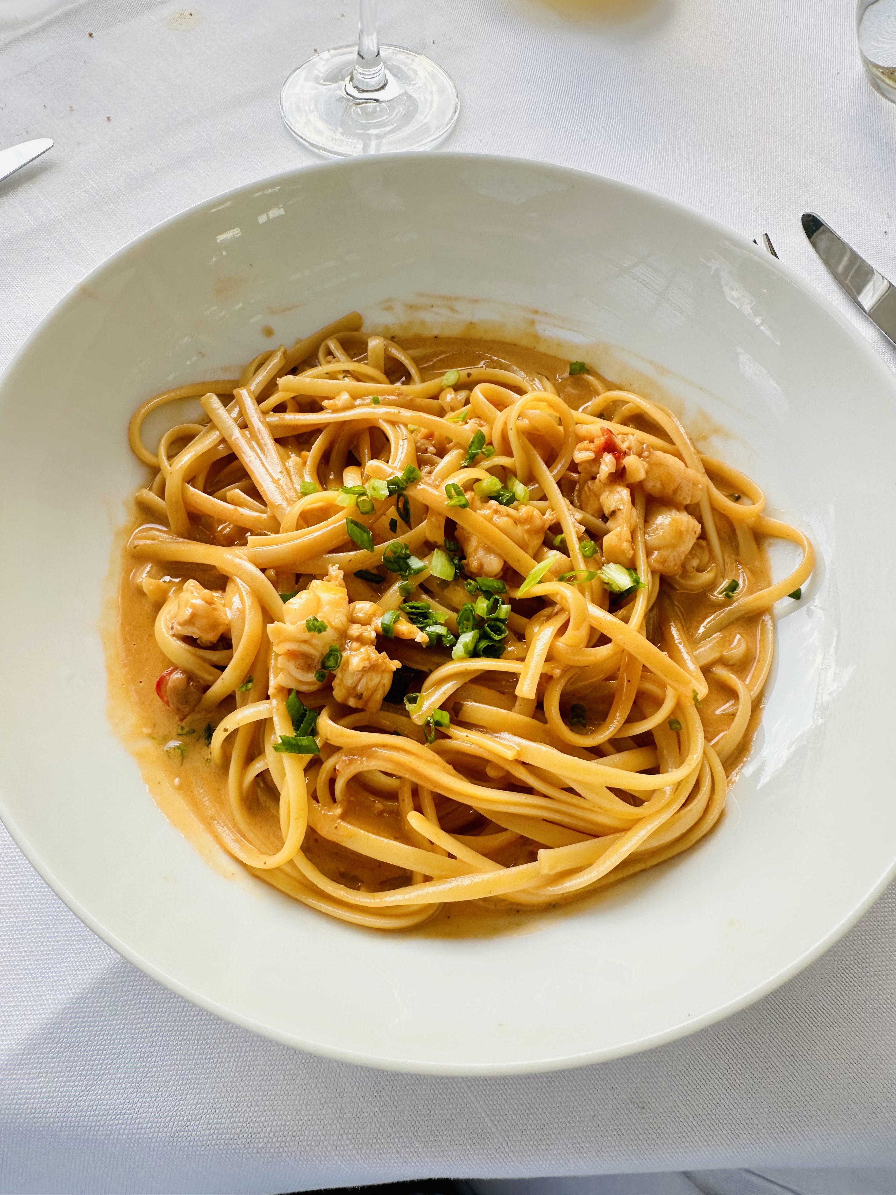 Bonne expérience dans un superbe lieu ! Le service y est parfait, cependant 48€ pour des linguine au Homard avec seulement 4 morceaux ce n'est pas à la hauteur. Il serait préférable d'avoir 1/2 homard pour le prix. Mention particulière pour la daurade en entrée.