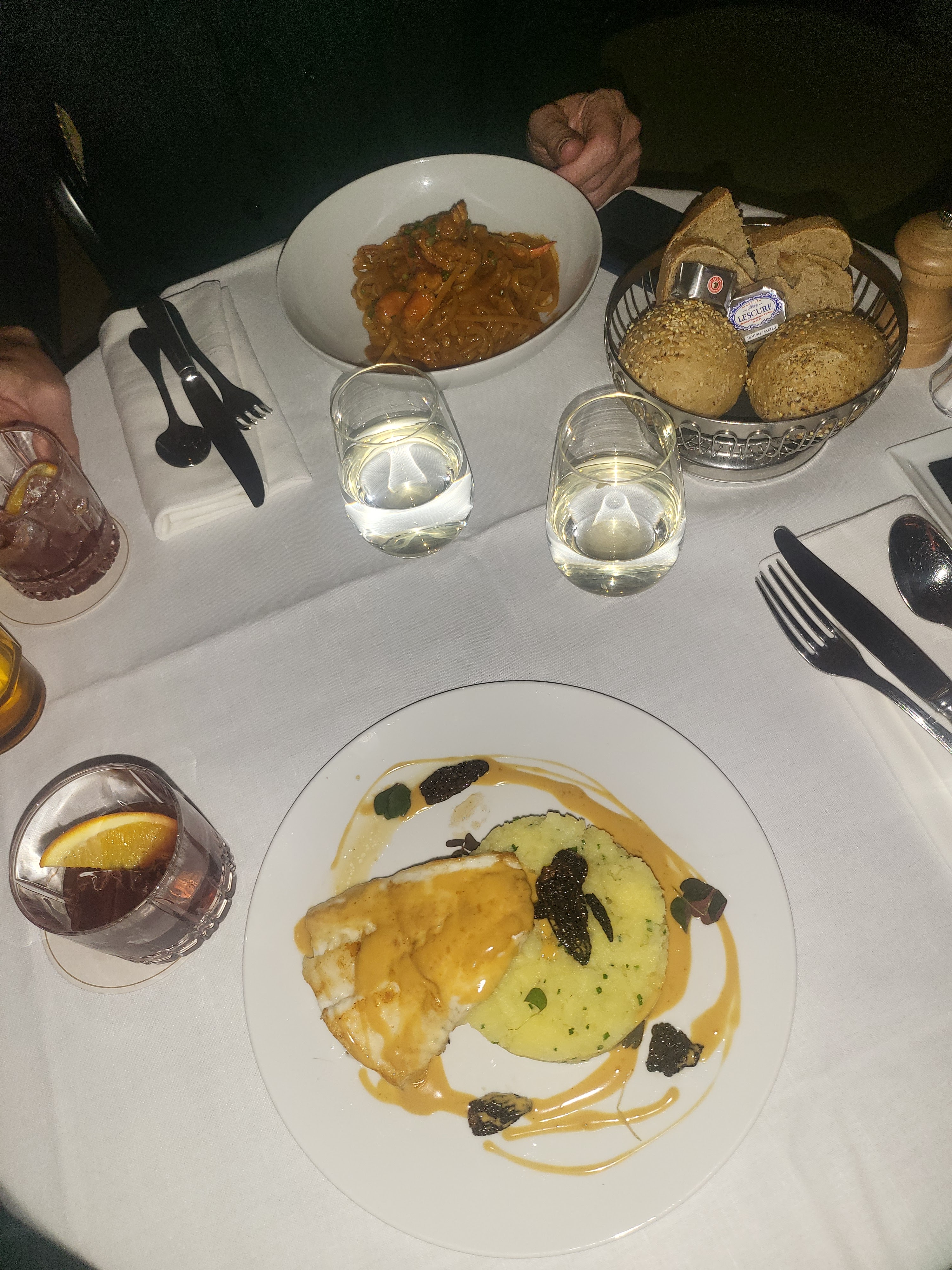Je n’ai pas apprécié l’entrée qui était du Bar (poisson) je suppose pas très frais mais bien assaisonner. Le plat principal était très bon (Turbot) et bien présenté. Au niveau du service quelques oublis mais un geste commercial a été fait sur ce point. Au niveau de l’ambiance une très bonne chanteuse durant le repas très agréable a écouter. Merci pour cet accueil. Je recommande.