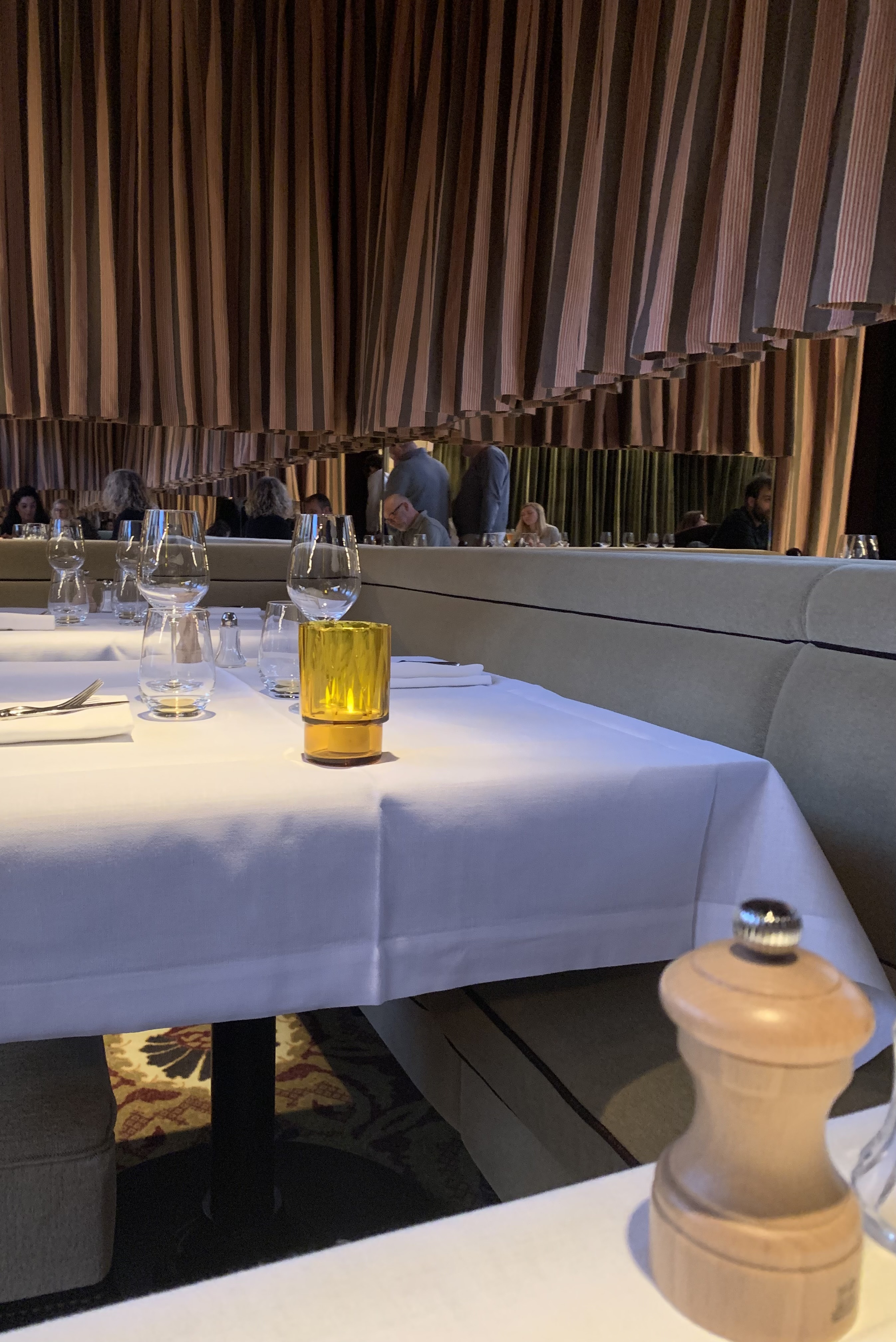 Très très belle ambiance et très beau restaurant J'ai beaucoup aimé comparé à celui de Paris. Le personnel est juste génial et la décoration est magnifique Des plafonds très haut Il y avait une chanteuse pour mettre de l'ambiance. Le repas était juste waouh Nous avons passé une superbe soirée