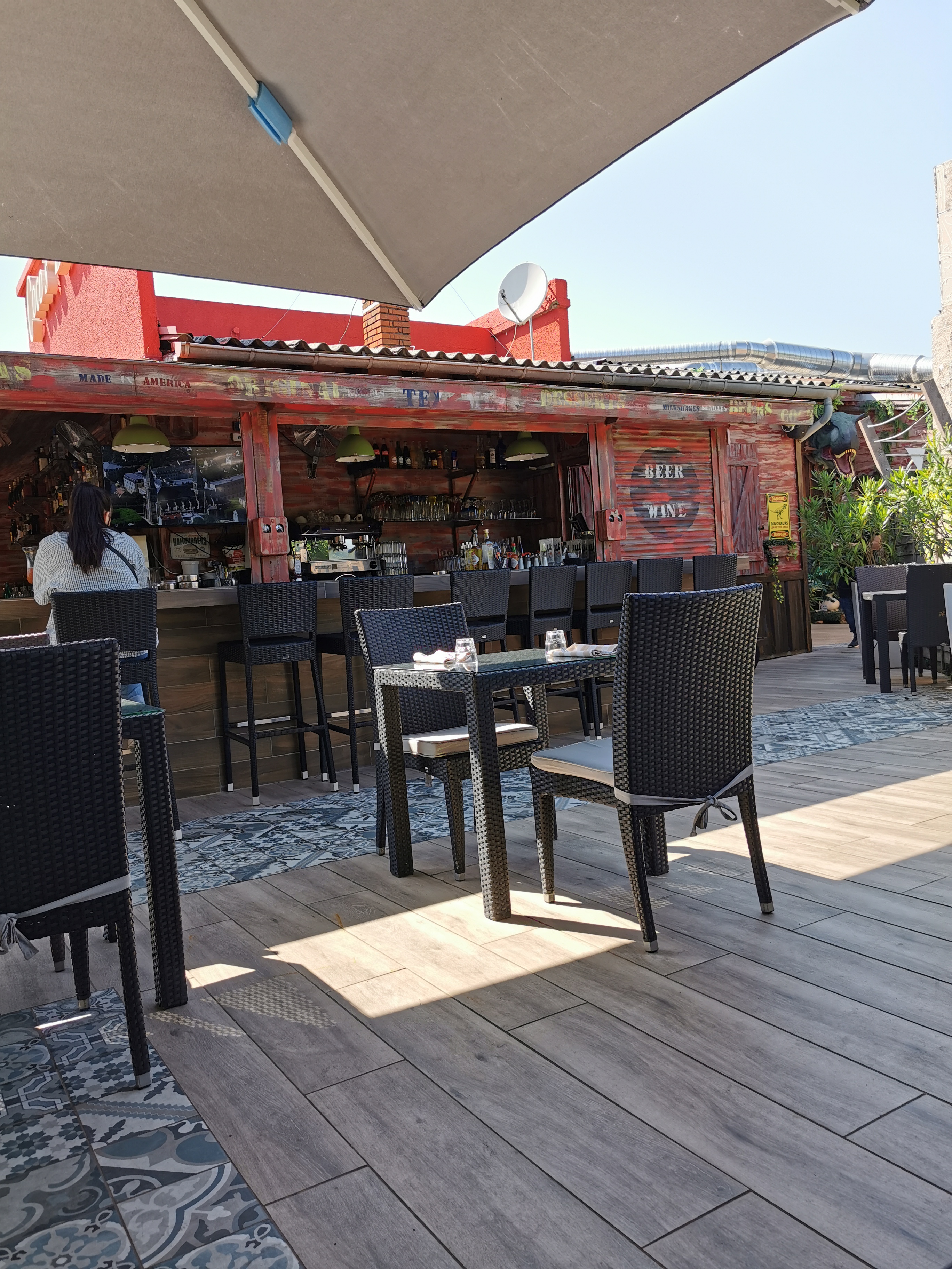 Dès l'entrée dans ce restaurant nous sommes plongés en Amérique avec une super déco. Belle terrasse insoupçonnée à l'arrière avec barmaid prêt à préparer de beaux cocktails. Service très tôt et non-stop qui nous permet de prendre un bon breakfast à 11h30 le dimanche (possible dès 9h). A recommander pour le dépaysement!