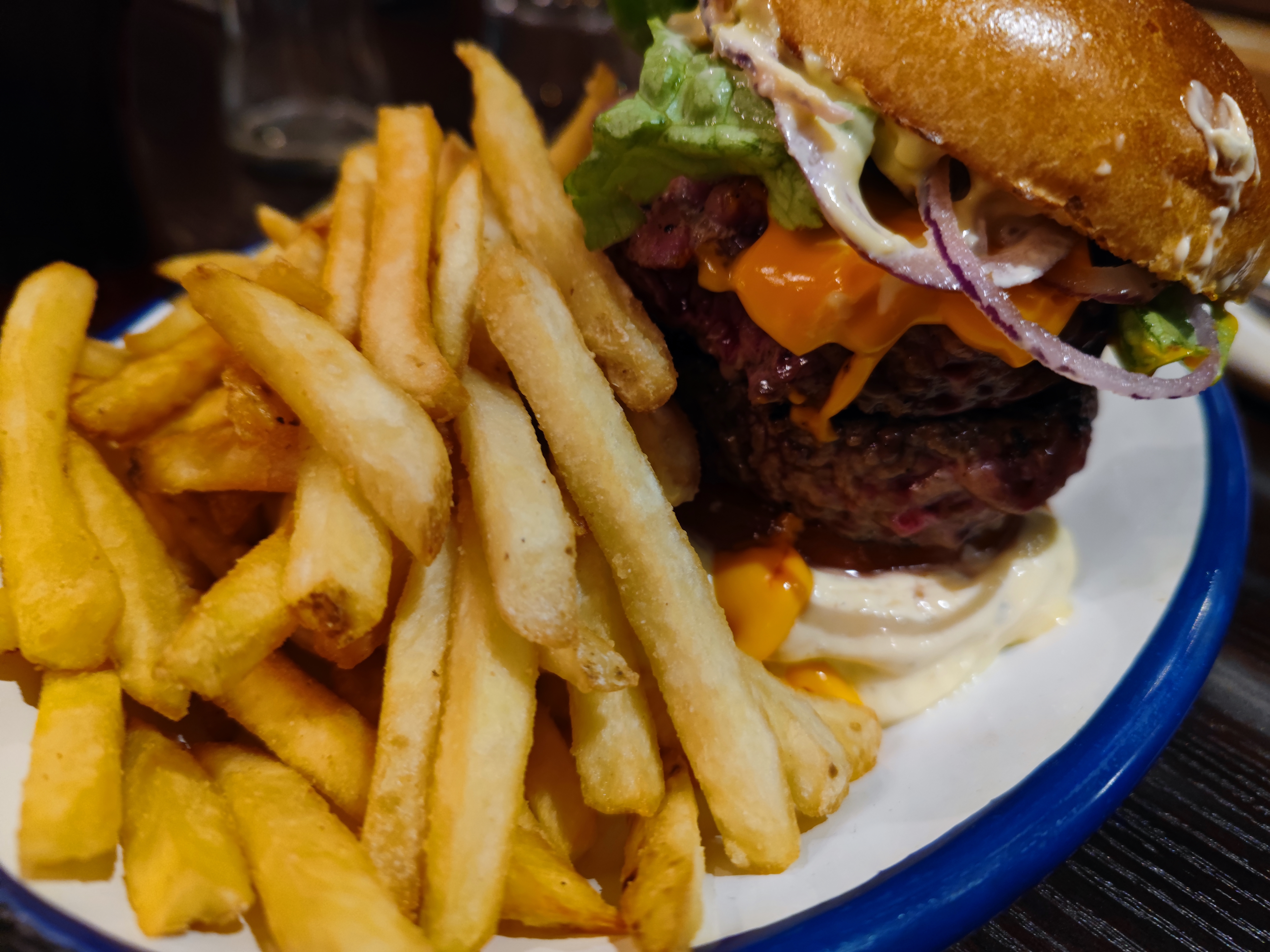 Ambiance très sympas, déco typique américaine. En revanche, très déçu concernant le repas. Mon cheese burger était froid et pas fou. Concernant les frites, qui me paressais des frites congelées, tellement déçu, pas du tout croustillante. Pour un burger frites à 16€, ça ne les vaux vraiment pas. Dommage car le lieu est très sympas.