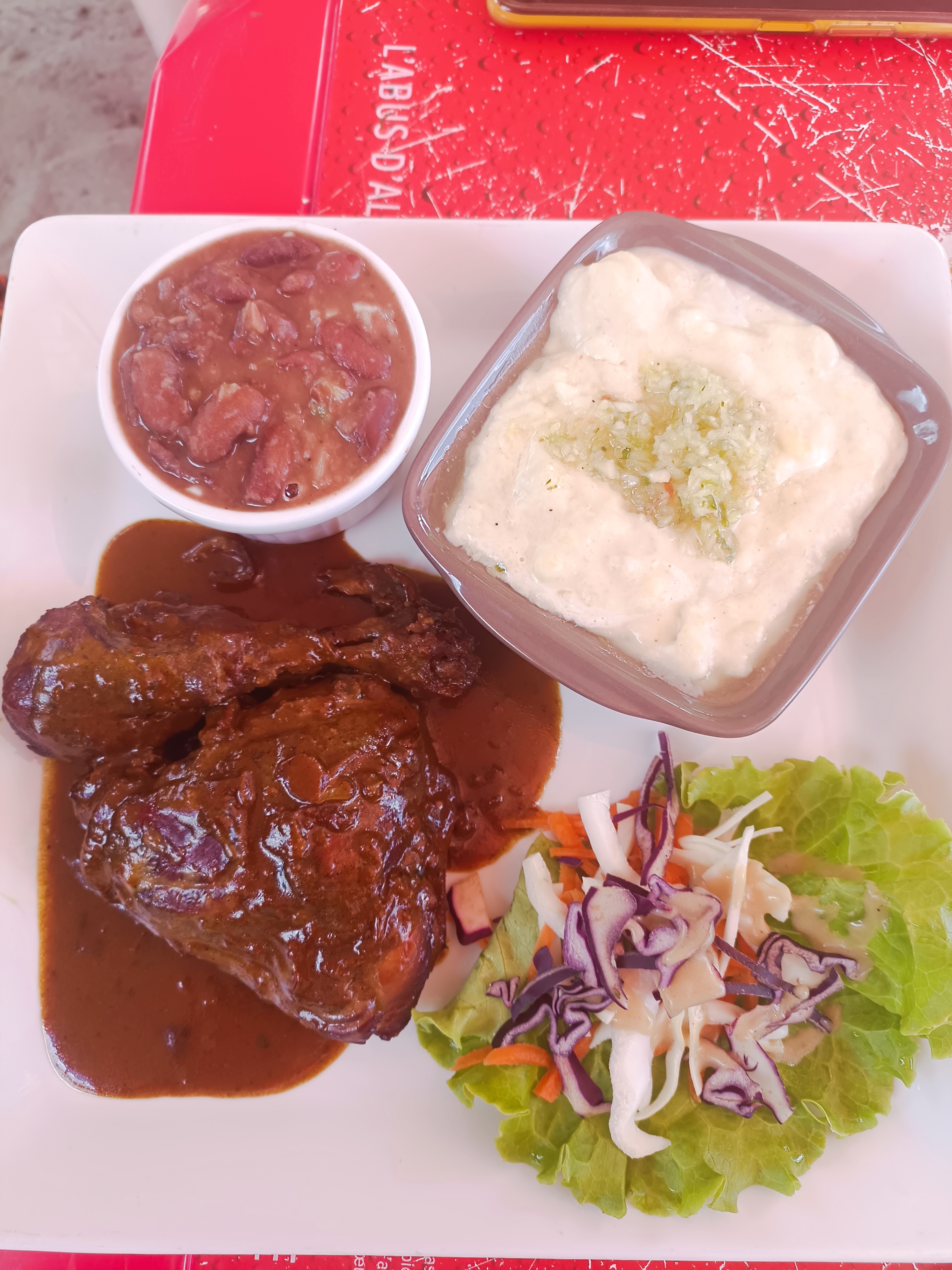 Le meilleur blanc-manger coco de l'île ! Et un poulet boucané à se damner ! Le tout les pieds dans le sable devant la mer, avec la plus sympathique et souriante des serveuses 😊 encore merci