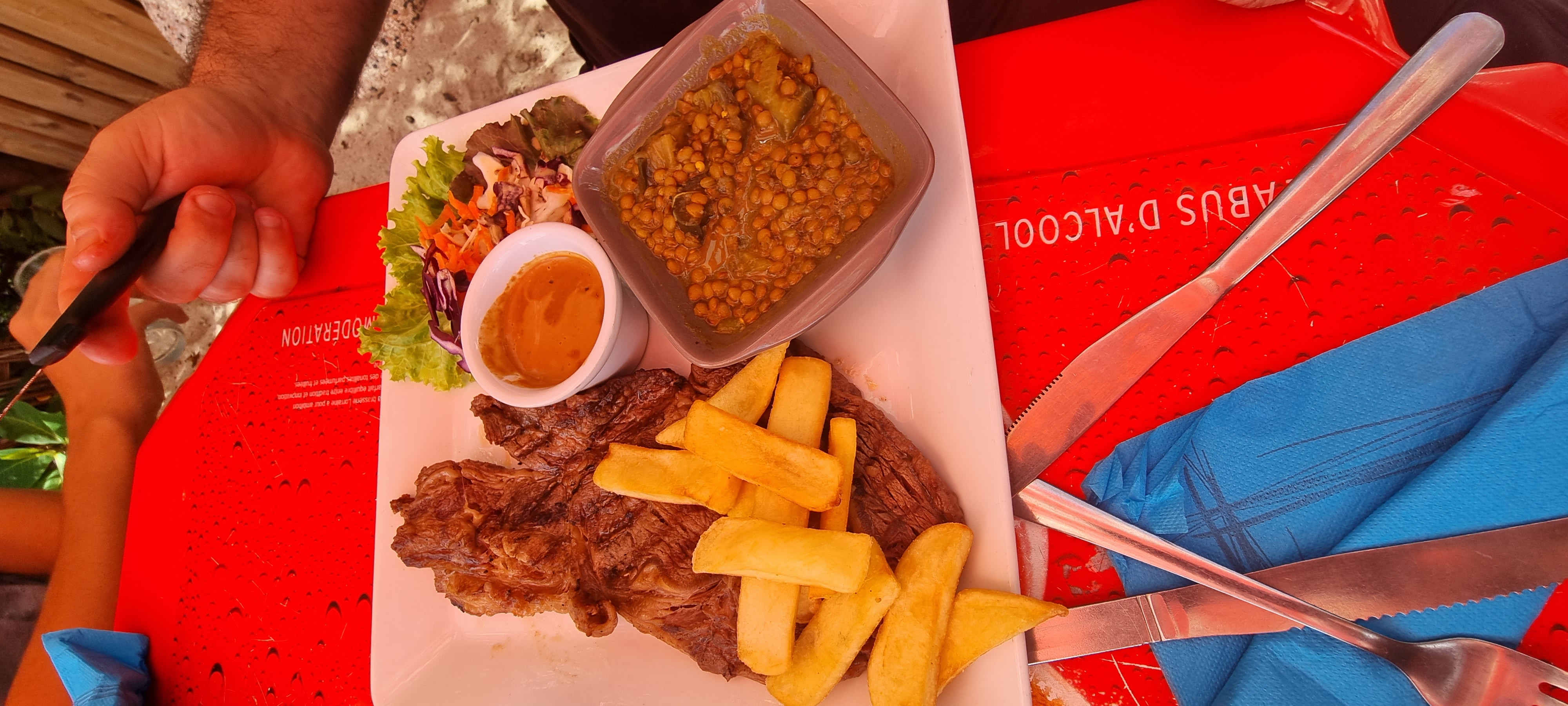 Repas très copieux, personnel attentionné et gentil. Terrasse sur la plage, tu manges les pieds dans le sable !