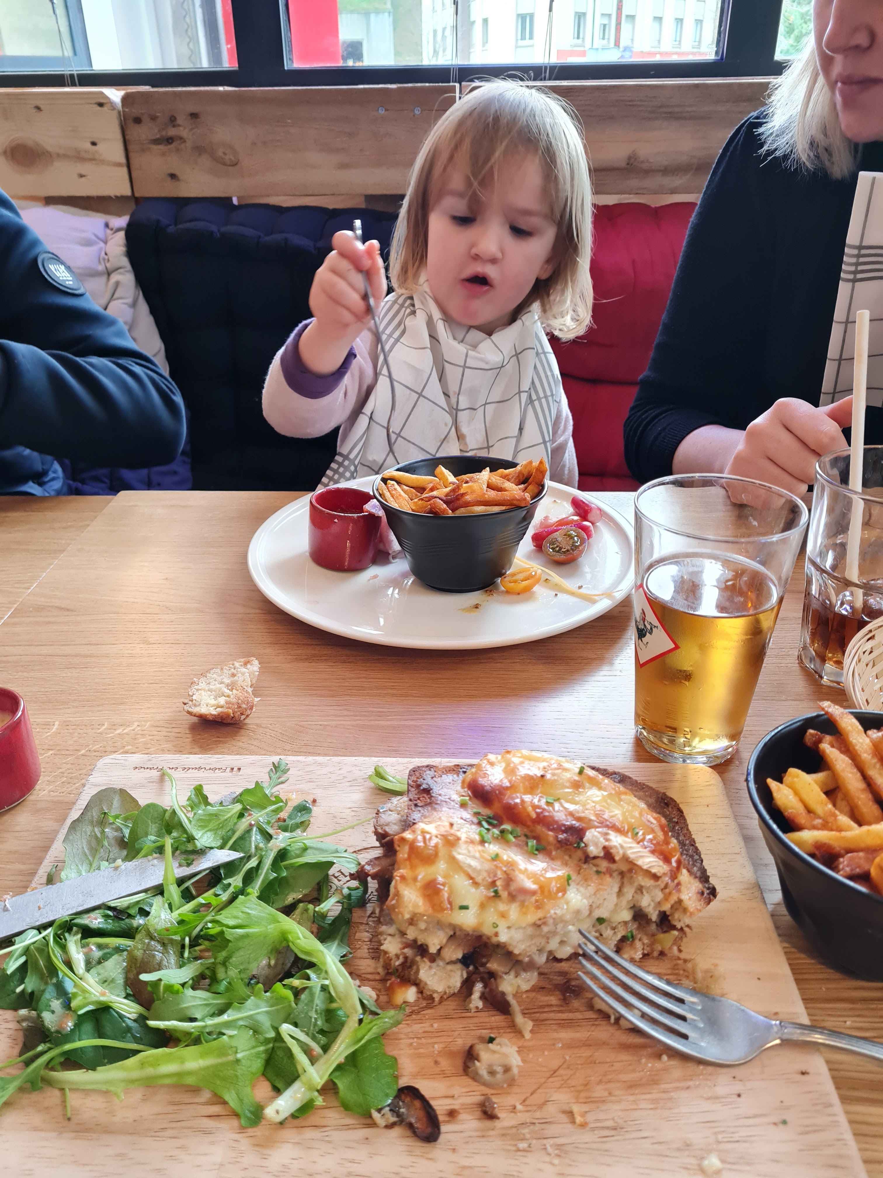 Sortie en famille 👪 du dimanche midi , temps pluvieux du coup on cherche un lieu grand convivial ou les enfants peuvent s'éclater, jeu vidéo 🎮 flipper pétanque, il y en as pour tous les goûts, Carte simple mais fournie, des croques au quiches avec jambon frites 🍟 pour le enfants Personnels agréable et à l'écoute Un endroit sympathique pour bien commencer la journée et pour terminer le week-ends