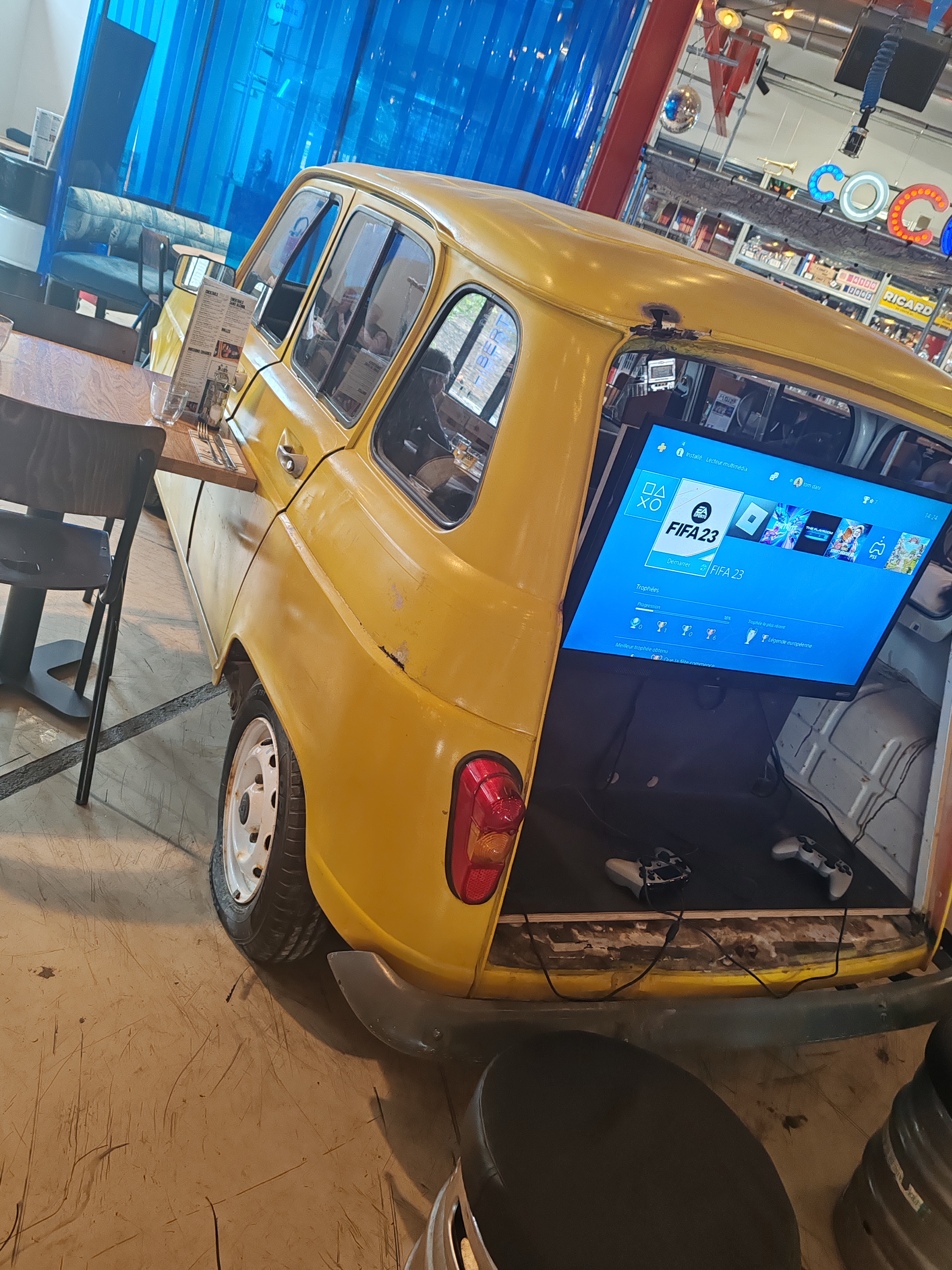 Une découverte 🤩 un très beau concept 👍 Vous mettez un bar, un resto, 2 pistes de pétanque, un photomaton, fléchettes, babyfoot, 2 vieilles bagnoles, une console de jeu, un fil à linge avec des tee-shirts humoristique, des affiches deglingo... vous secouez et voilà Cocorico, vous y êtes 👏 nous y sommes allés avec nos pioupiou de 3 et 5 ans, pas de problème, y'a une ancienne cabine tel pour les occuper (au cas où, vous n'avez pas trouvé votre bonheur sur la liste précédente). Bref, une adresse à retenir 👍👍