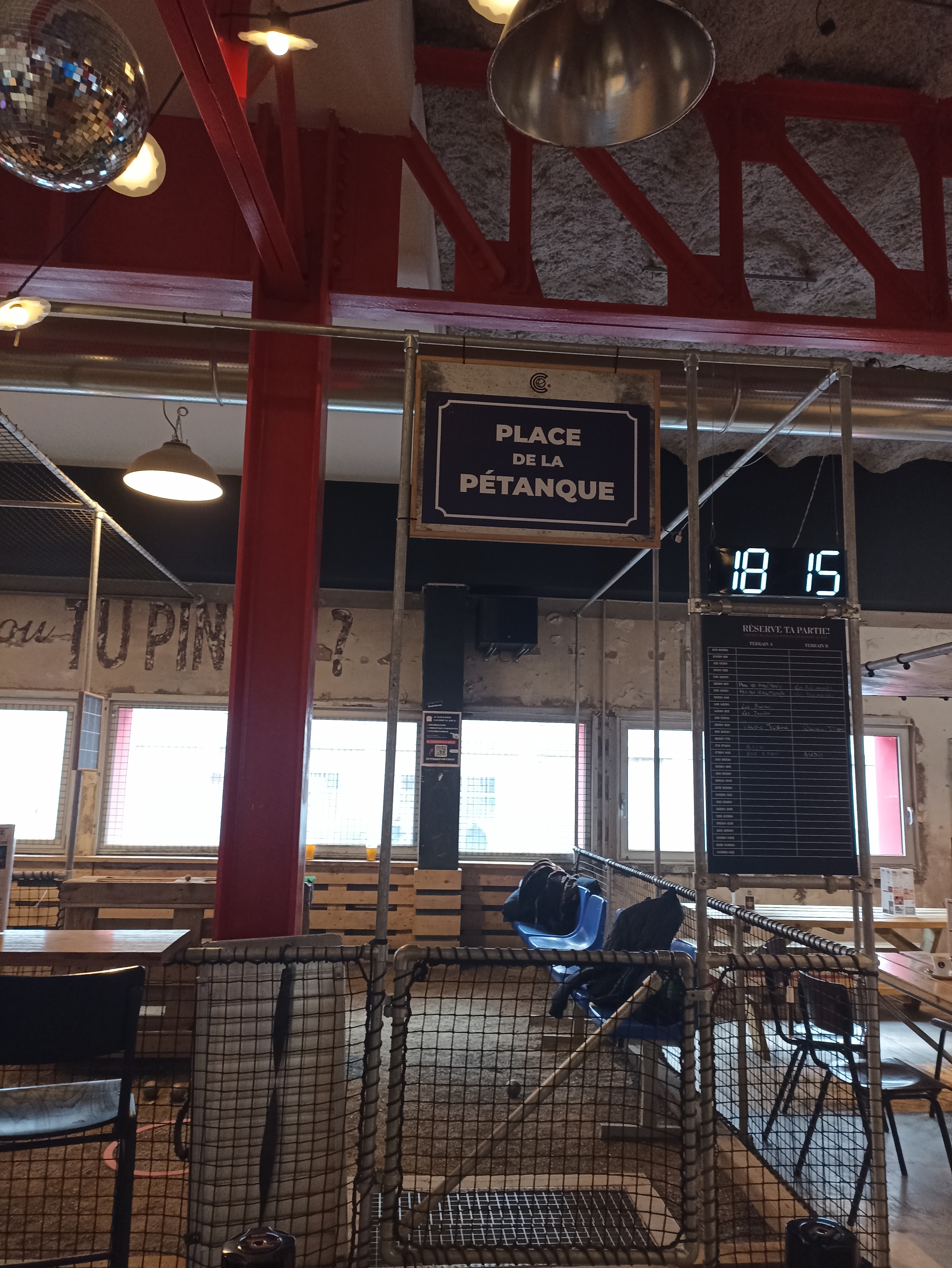 Une bonne partie de pétanque avec un ami durant un match de football. Belle ambiance. Intérieur du bar sympa en décoration. Hormis au bar ou les anciens que nous sommes ont été servis après les plus jeunes malgré attente. Attention à l' agisme !