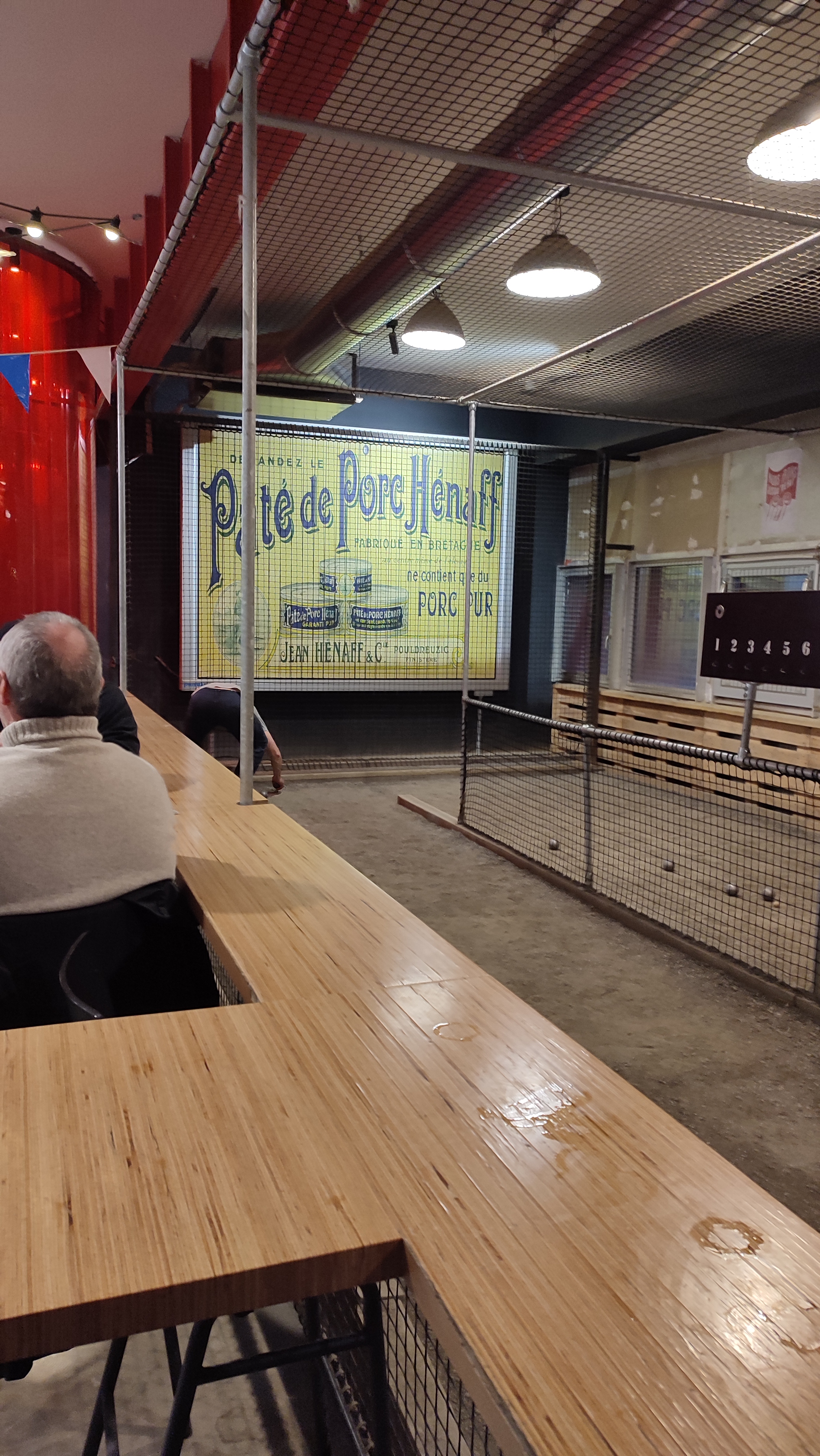 Espace plutôt sympa, le principe est cool mais jamais accès aux pistes de boules (peu nombreuses) qui sont prises toujours par les mêmes personnes, dommage nous aurions bien aimé tester ce qui fait la différence de ce bar. J’ai commandé un cocktail et j’ai malheureusement été très déçue, le finir a été compliqué, le goût n’était pas au rendez vous. Mon conjoint a prit une pinte de West IPA et était très content. Petit plus pour la petite cabine photo qui est très sympa et le personnel au comptoir était très agréable et souriant.