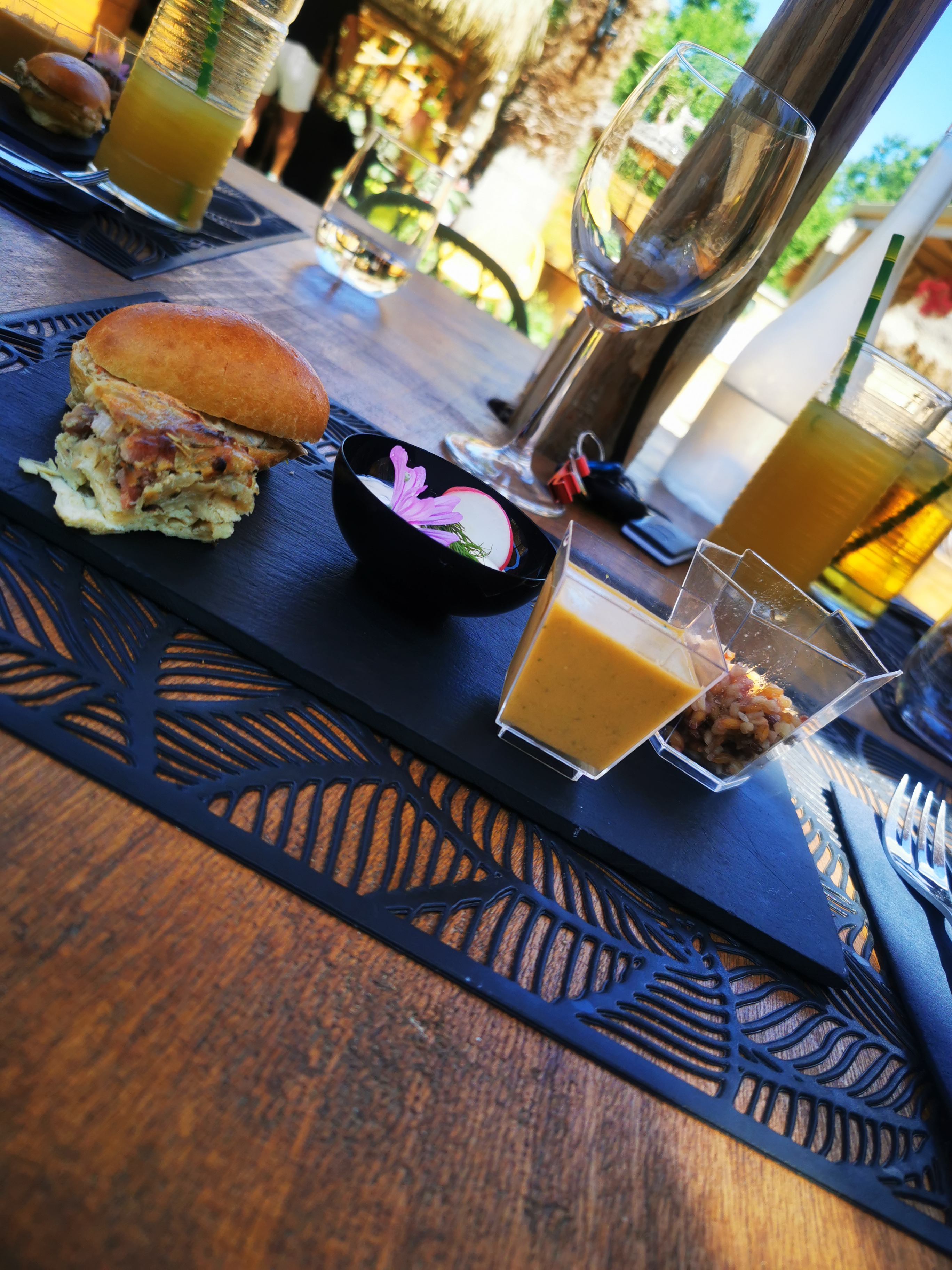 Le lieu est magique. Le personnel est super sympa. Pour les enfants il y a un espace jeu avec du sable, toboggan, escalade c'est parfait. Le punch maison est incroyable. Par contre le service était très très long. Avec des enfants en bas age il ne faut pas hesiter à demander à ce qu ils soient servis en premier avant les adultes car cela peut devenir ingérable. J'espere qu'ils trouveront le personnel supplémentaire pour diminuer les temps d'attente et que ce lieu devienne incontournable. Il nous tarde de decouvrir le brunch du dimanche quand il fera moins chaud. En tout cas c'est une tres belle decouverte et nous reviendrons.