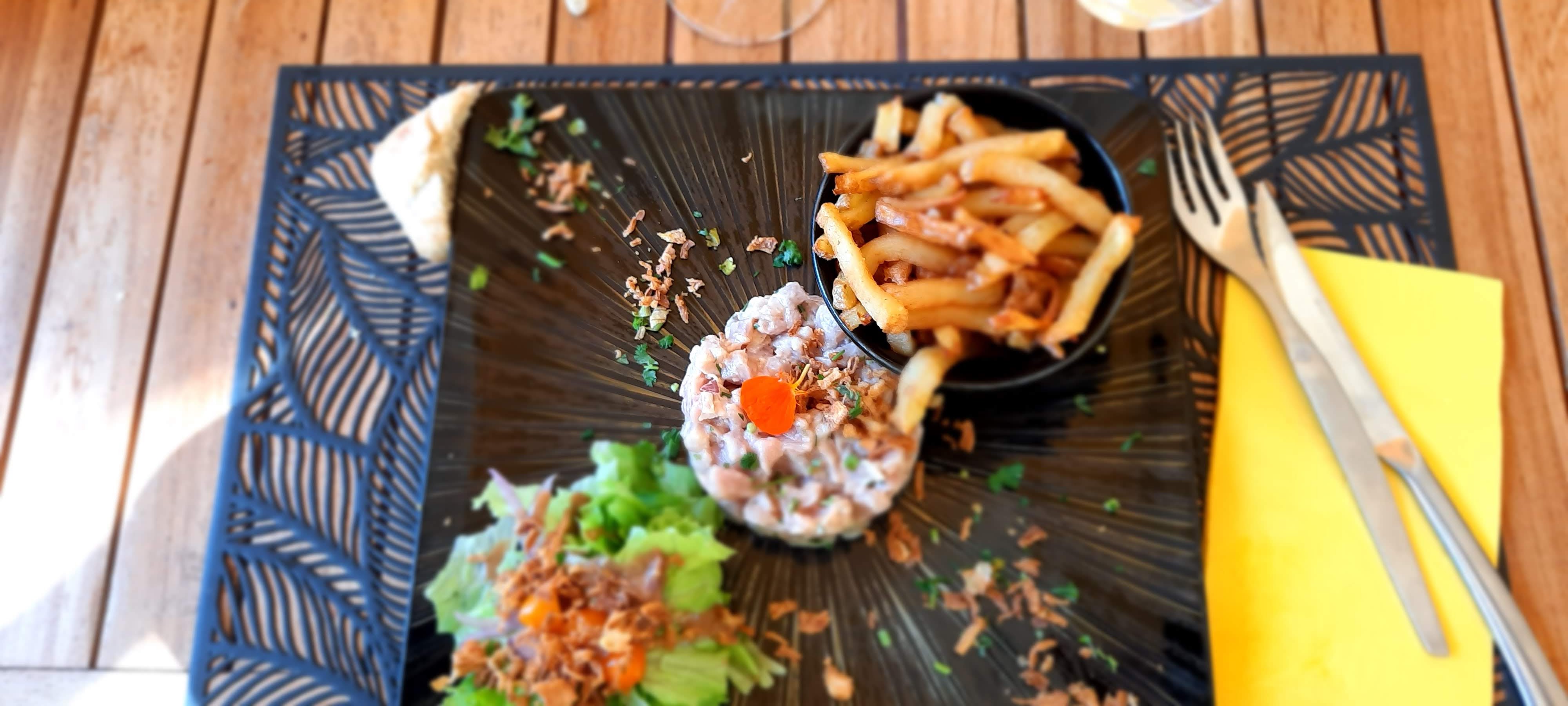 Cadre dépaysant et original Un grand merci au cuisto pour la qualité des assiettes Choix restreint mais gage de qualité et de produits locaux Je conseille ce resto aux amateurs de cuisine du monde Poisson a la tahitienne délicieux De bons cocktails également Seul bémol la gérante tres peu aimable, mais pas ses serveuses ca rattrape !