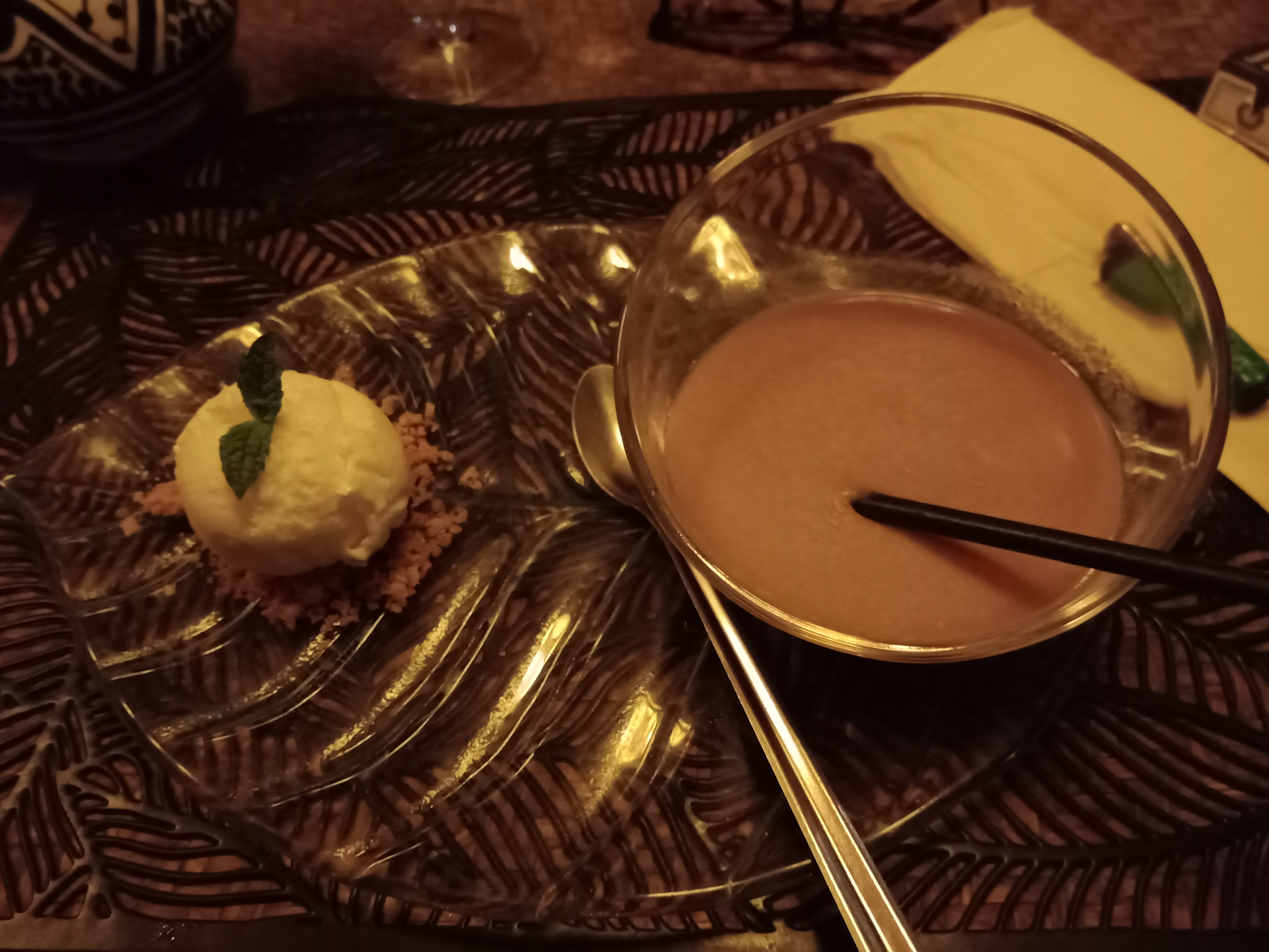 Bonne ambiance, lieu atypique donc sympa pour changer d'ambiance. Je n'ai pas goûté la cuisine donc pas d'avis a ce sujet, juste bu un verre et manger une glace. Pas énormément de choix au niveau des glaces et desserts, en plus arrivée vers 22h et de nombreux parfums plus disponibles , dommage...Sinon très sympa à tester