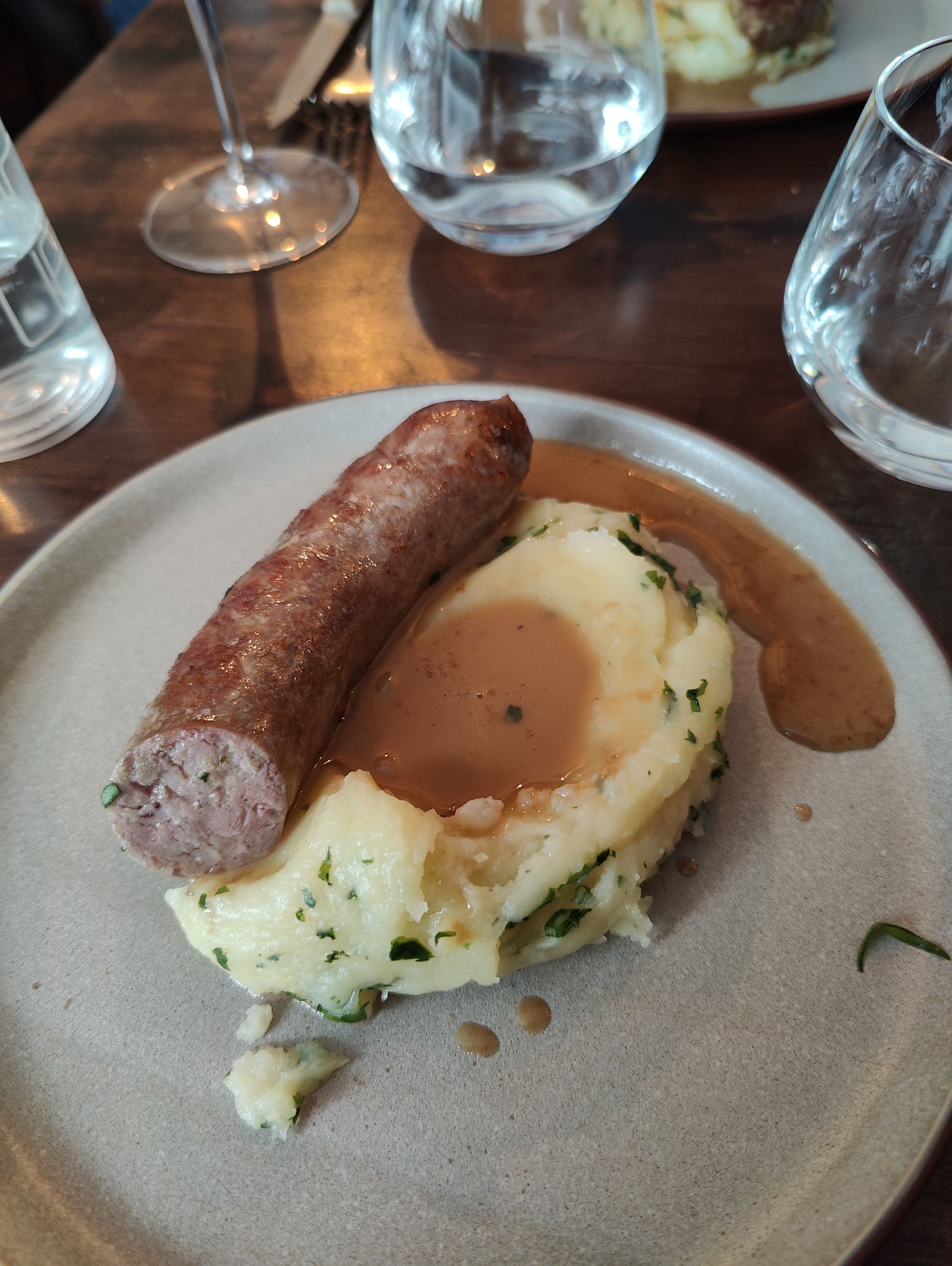 Un cran ou plus au-dessus - top. Le dessert aux poires et au chocolat était délicieux et ne ressemblait à rien de ce que j’ai jamais mangé.