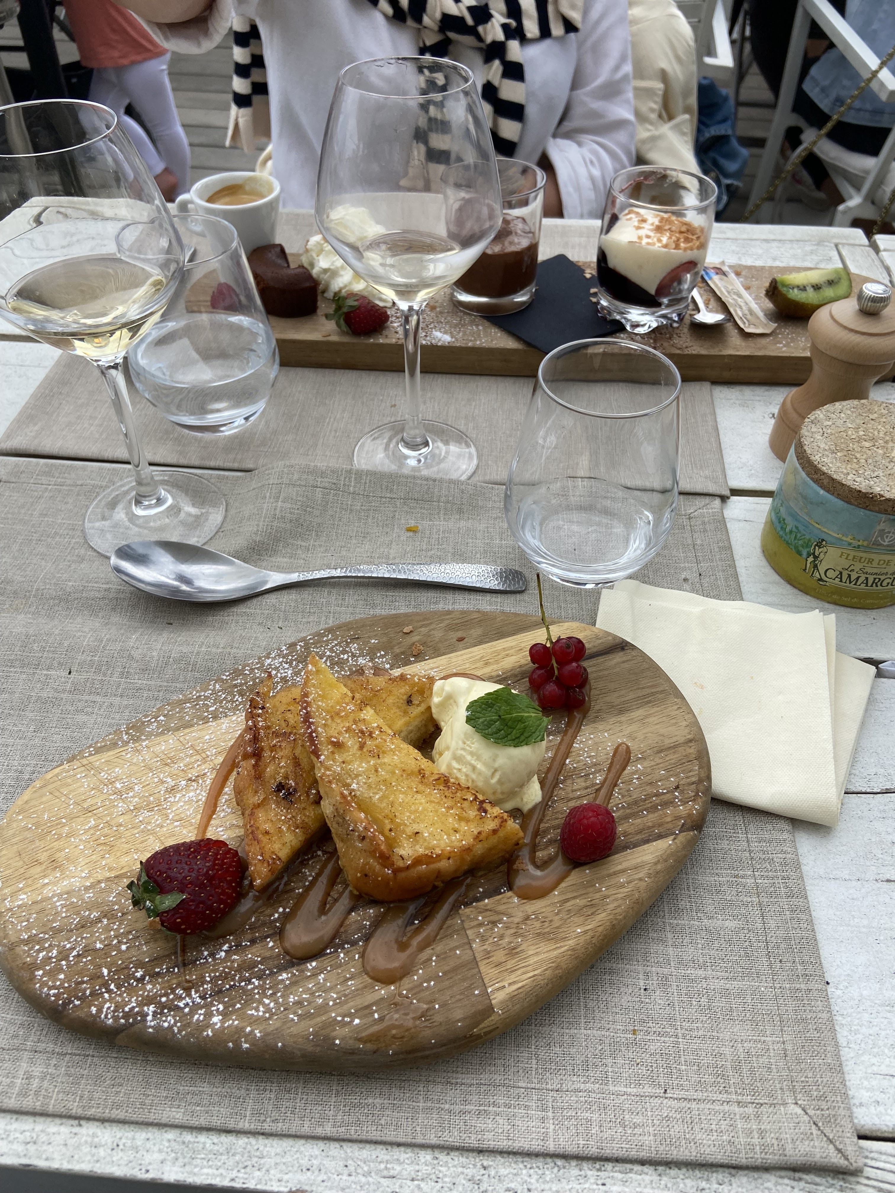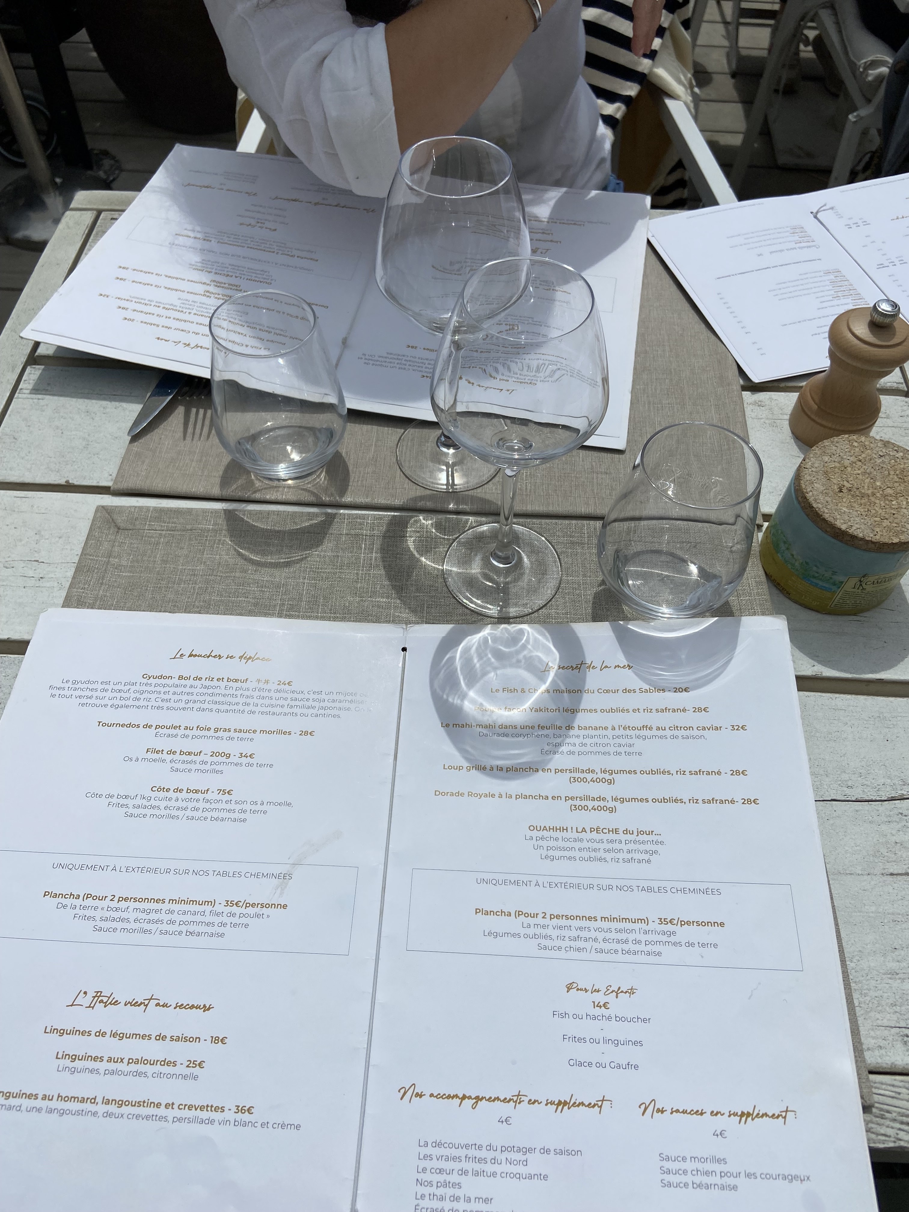 Seul endroit ouvert en dehors des horaires de repas et nous n'avons pas été déçu. Nous avons prit une planche délicieuse et un croque Monsieur à la Truffe (chers mais à plusieurs ça passe). Nous avons fini par un café gourmand très gourmand à base de 6 desserts. L'emplacement est pas mal sauf lorsqu'il y a du vent. comme son nom l'indique le restaurant est au coeur des sables et ça peut être dérangeant. Je mets 4 étoiles car les toilettes laissaient à désirer