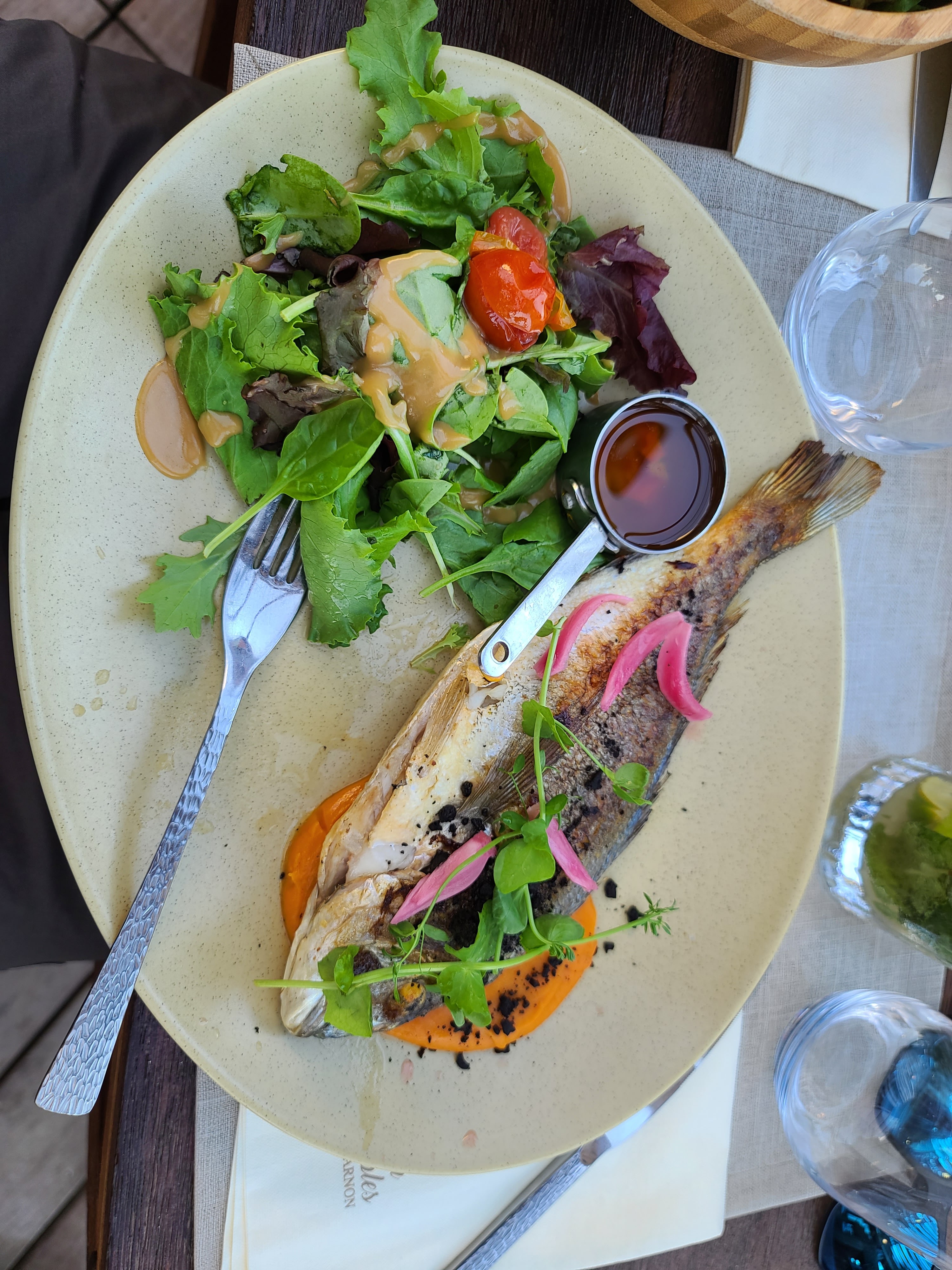 Super ! Par hasard nous avons découvert ce resto, et nous avons été ravis, nous avons déjeuner sous la pergola à 2 reprises en 10 jours, la cuisine est succulente je recommande le risotto avec les coquilles saint Jacques et le cœur des sables en dessert les serveurs hommes et femmes sont sympathiques et à l’écoute du client, vraiment un vrai bon moment