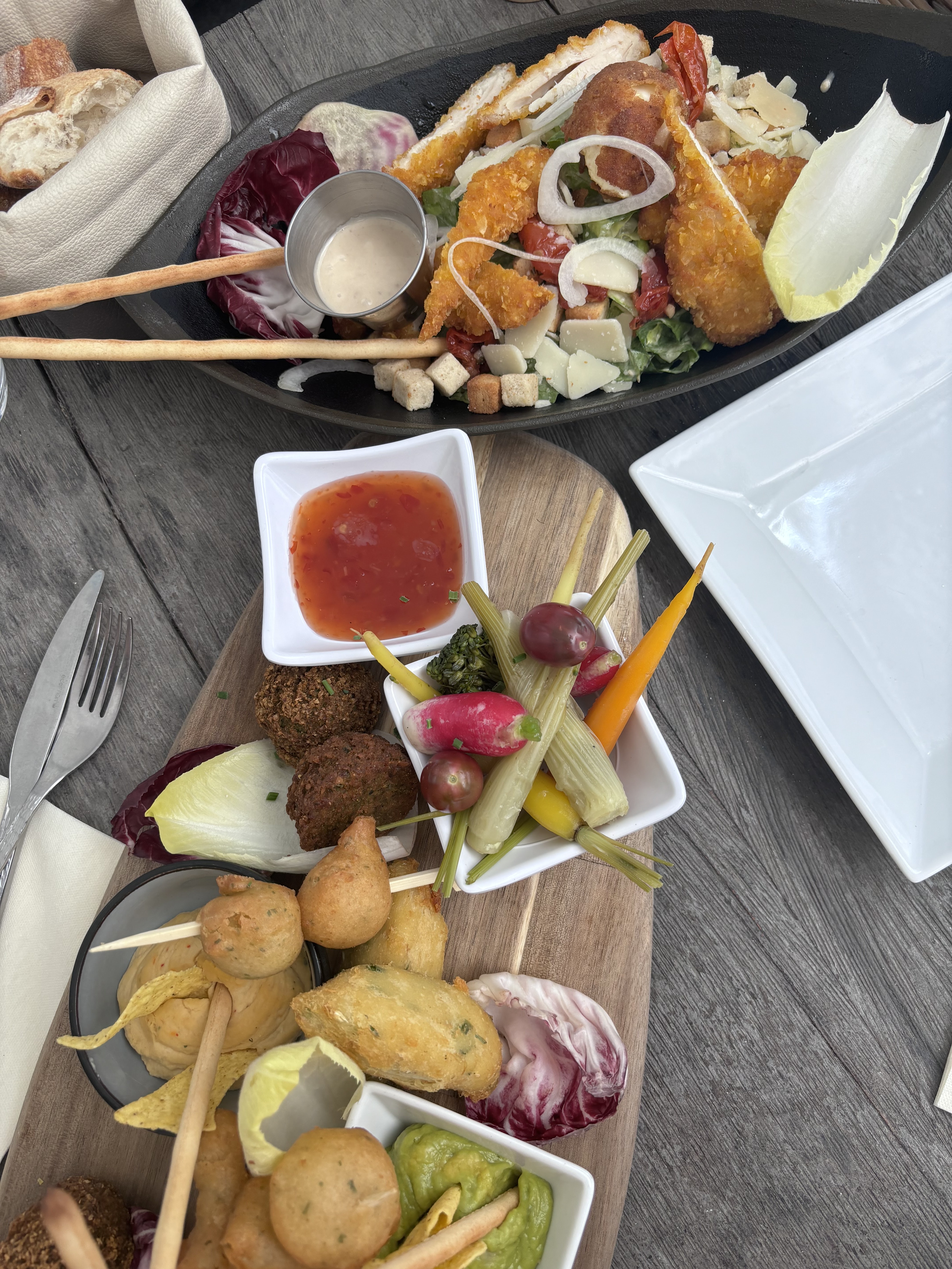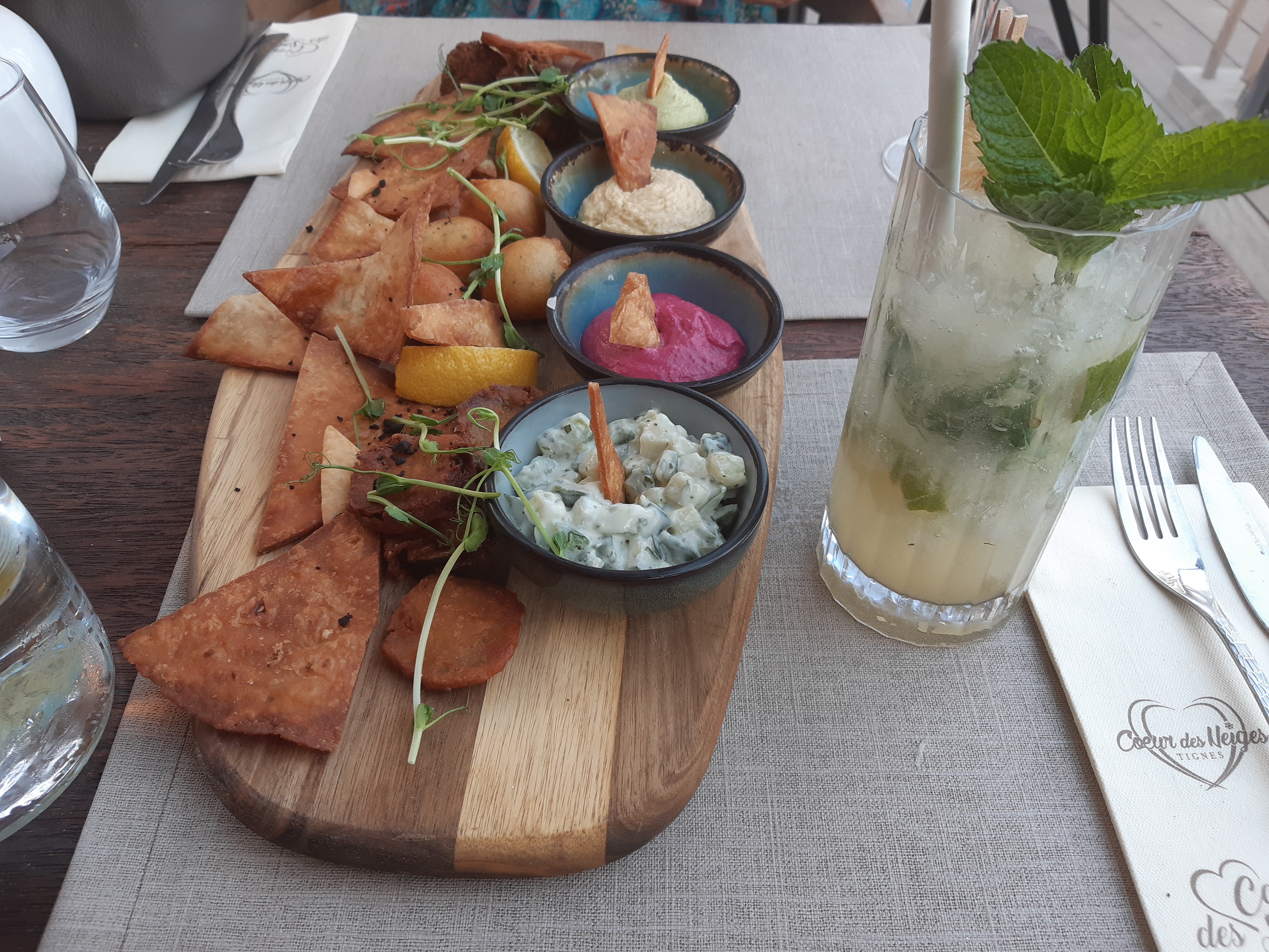 Un super cadre et une super équipe! En revanche, pas de beignets de fleurs de courgettes mais des pringles sur la planche à partager! Un peu moyen pour le prix…