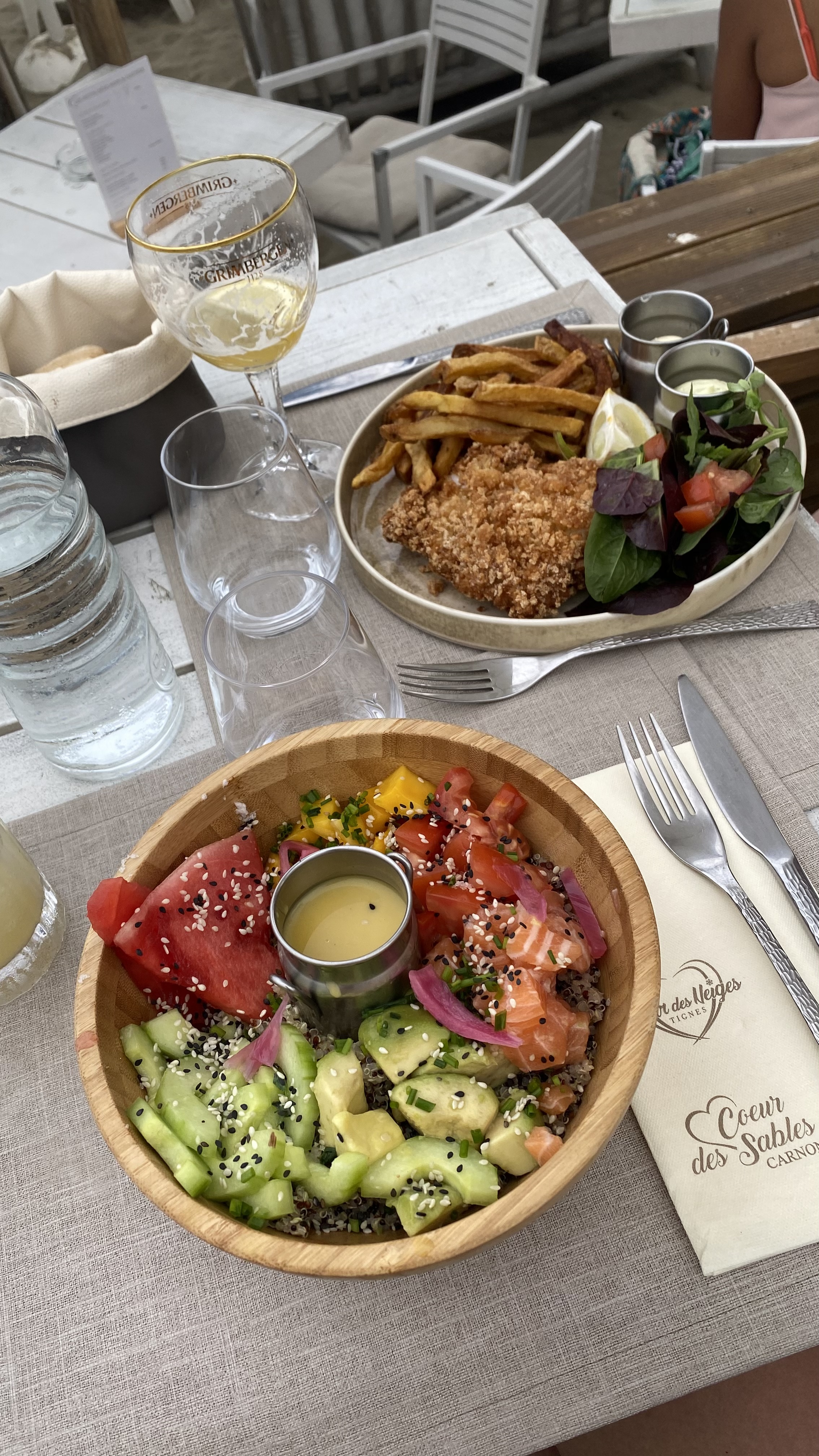Très bon restaurant. Instagrammable à souhait, le cœur des sables est devenu en quelques mois une institution pour Carnon. On peut dîner sur la plage ou à l'intérieur où l'on trouve même des fauteuils massant. Réservation conseillée.
