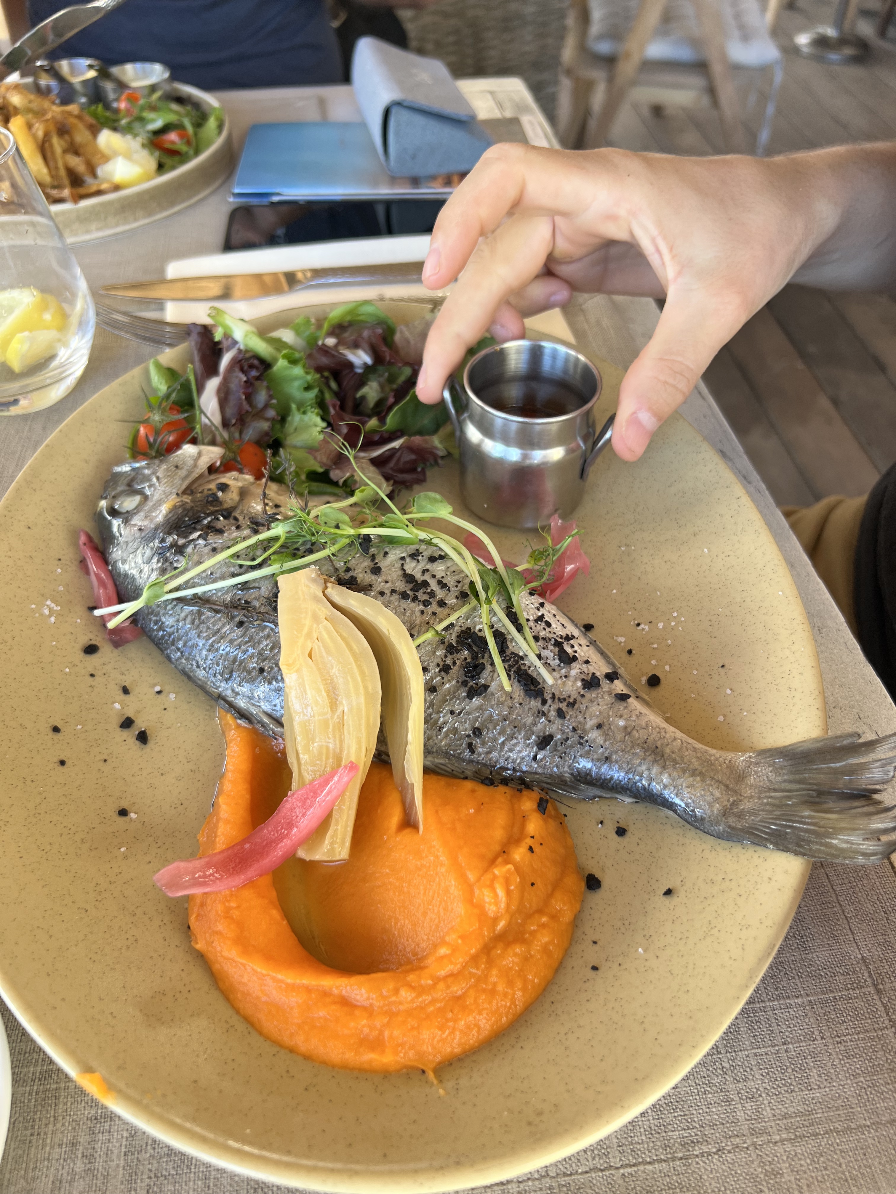 Une bonne expérience pour un dîner en famille à 5. il y avait malheureusement beaucoup de vent ce qui a rendu l'expérience moins agréable que ce que cela aurait du être. Malgré tout nous avons bien mangé pour une addition qui se situe dans le standard de ce que l'on peut trouver dans les restaurants dit de plage. Le service était très sympathique et chaleureux ce qui est un point positif et qui me permet de donner une 4e étoile