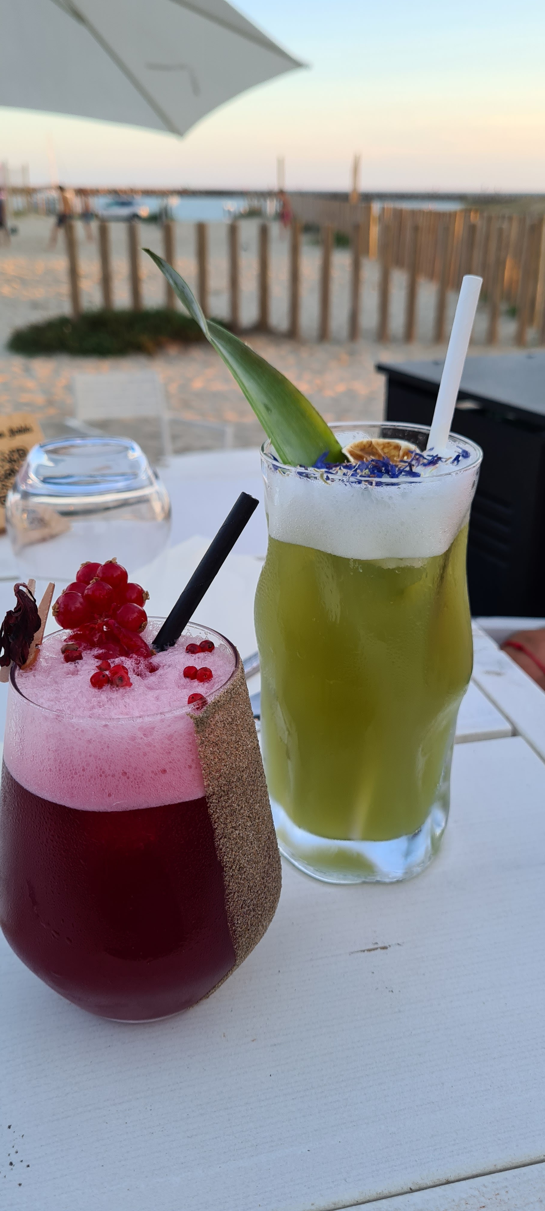 Rapport qualité/prix bien trop élevé. 72 euros pour 2 cocktails et 2 plats... Les cocktails sont bons même si la présentation n'est pas forcément au top (du sable sur le bord du verre en décoration, pas la meilleure idée...). Les plats sont corrects mais pas assez travaillés ou originaux, surtout au vu du prix. Le service est un peu long et oublie des choses essentielles. Pas de pain apporté pour le repas par exemple, pas de petites attentions pour l'apéritif (biscuits, bouchées, chips ou même cacahuètes, ...), pas de vin proposé. Cela semblerait pourtant plus que normal pour le standing a priori souhaité par cet établissement. Par ailleurs, l'environnement plage pourrait être parfait si seulement il n'y avait pas des hordes de beach-volleyeurs à frapper du ballon juste sous votre nez en terrasse. La table attribuée se situait aussi dans un angle, juste à côté d'une soufflerie très désagréable le temps du repas et beaucoup de vent. Soleil absent le soir en Septembre, au moins. Prévoir de quoi vous couvrir pour mieux en profiter.