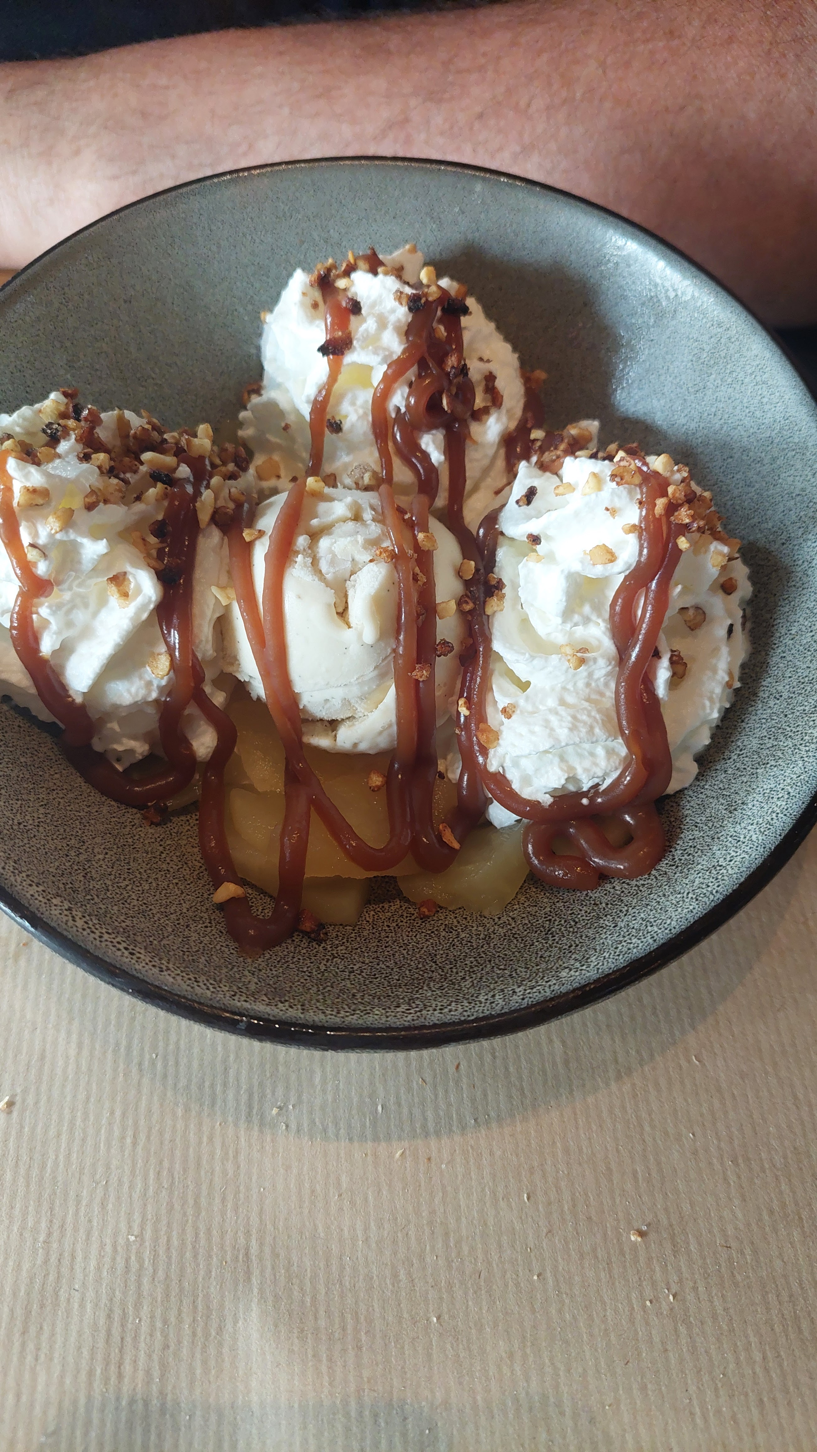 Spritz bien dosé en apéro (je le signale car ce n'est pas évident de le trouver ainsi), de très bonnes assiettes ensuite, un personnel charmant et bienveillant, une terrasse tranquille et agréable accompagné d'une musique qui l'était tout autant, ma compagne et moi étions ravis et recommandons !