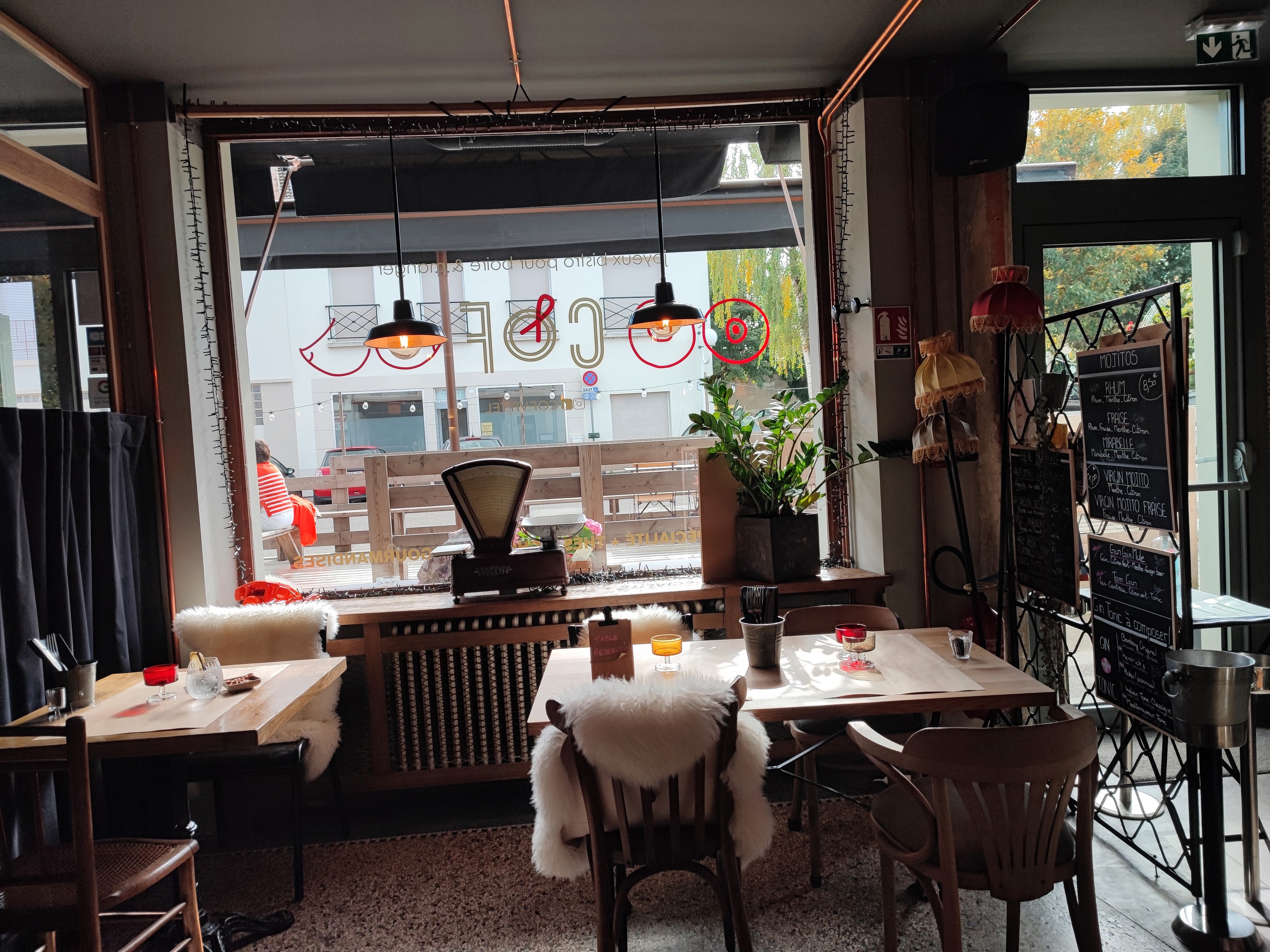 Première fois que je teste ce restaurant et je dois dire que ça a été une excellente surprise ! Dès l'entrée, on se sent bien, grâce à une déco vintage chic très chaleureuse. L'accueil est tout aussi chaleureux et le service irréprochable. Question nourriture, j'ai été ravie de voir qu'il y avait des plats végétariens à la carte 😊 J'ai testé le big Végé avec les frites et la mayonnaise maison, un vrai régal. La galette de patate douce est juste délicieuse 😋 Le dessert café Cof est aussi une bonne surprise : simple et efficace, la boule de glace chocolat surplombe un croustillant (miam miam) et le tout est surmonté d'une crème chantilly. Bref, je me suis régalée, le tout dans un cadre convivial et une ambiance détendue. En plus, le rapport qualité/prix est top. Mention spéciale à la gérante pour son sourire communicatif ! Un resto qui mérite d'y manger au moins une fois 👍