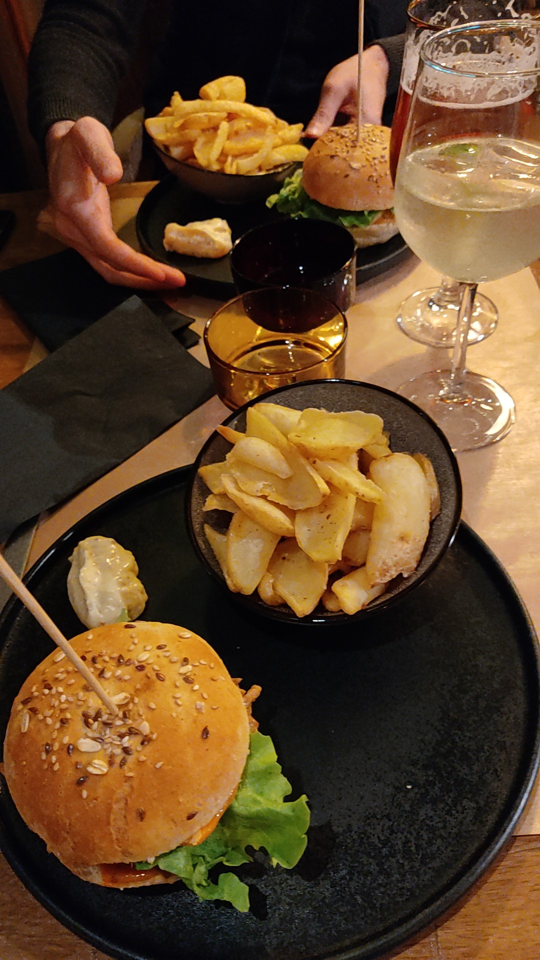 Soirée en famille, nous avons choisi le restaurant un peu au hasard grâce aux photos et avis principalement, sans réserver. Nous avons prévenu en arrivant que la séance de cinéma débutait à 20h30 et tout a été mis en place pour que nous puissions y être à l'heure ! Le repas était excellent, de la bière du moment au dessert en passant par une mayonnaise maison à tomber 😍 le burger végétarien extra, un service au top!Merci pour cette très jolie découverte, nous y reviendrons sans hésitation.