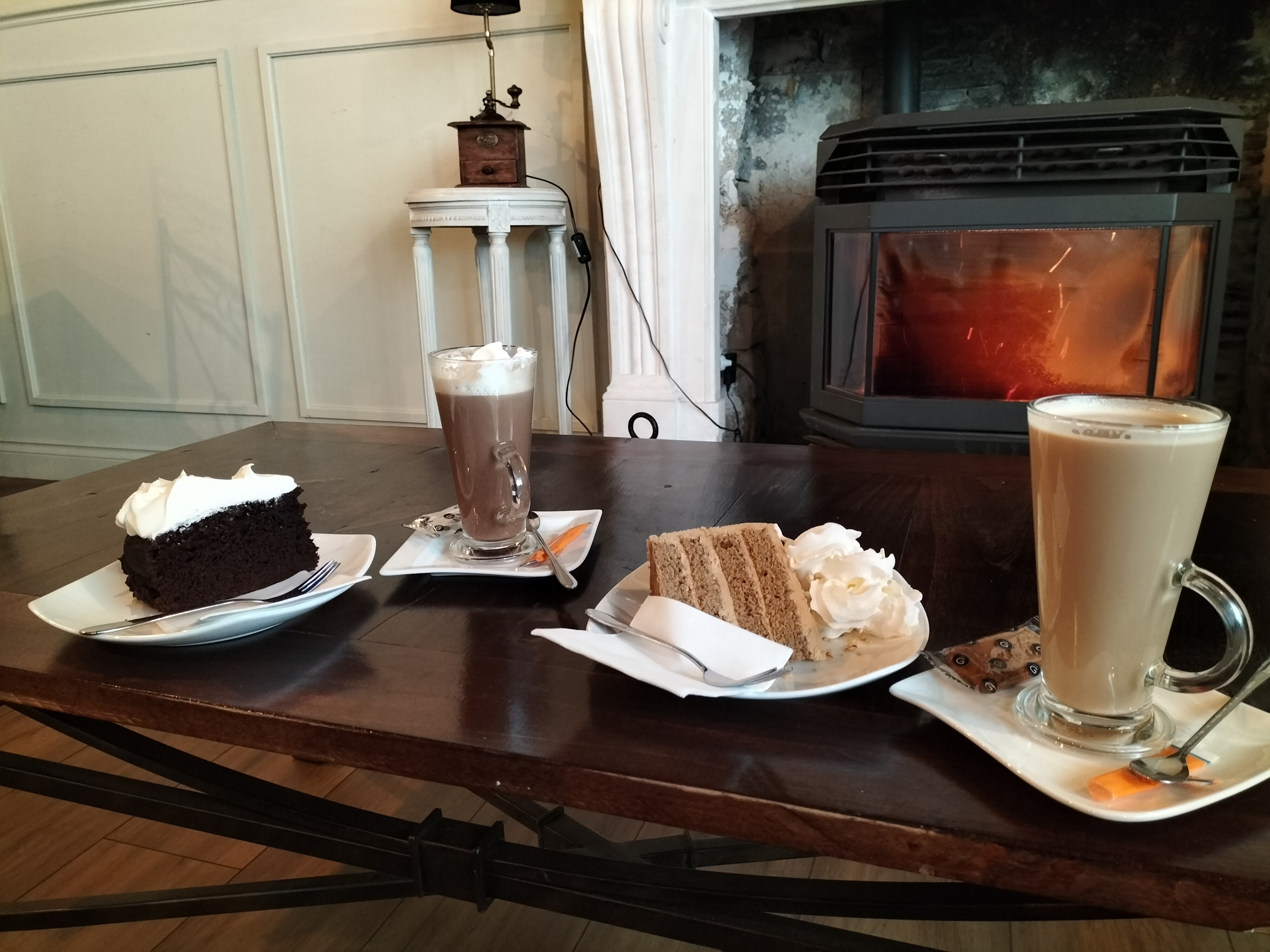 Café sympathique et charmant et le gâteau est à tomber par terre.