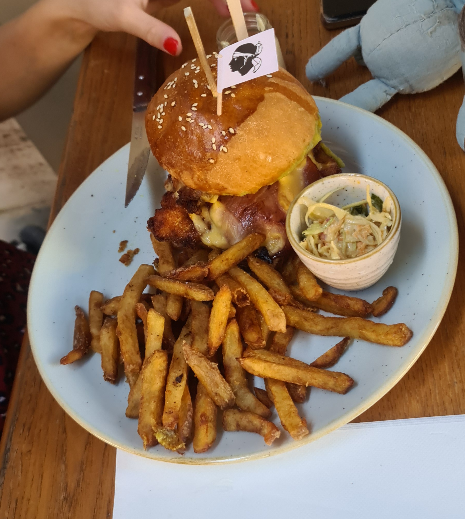 Très belle déco, bon burger avec des produits frais, un service super. On recommande !